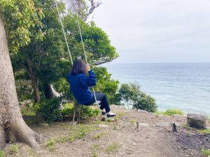 グランピング場にあるブランコは海が見えてとても気持ちよかったです!