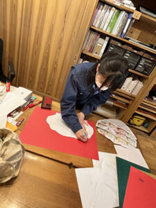 山本さんはillustratorを使い、手に持つ扇子の作成!