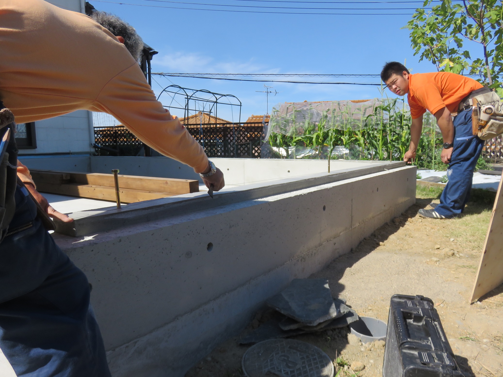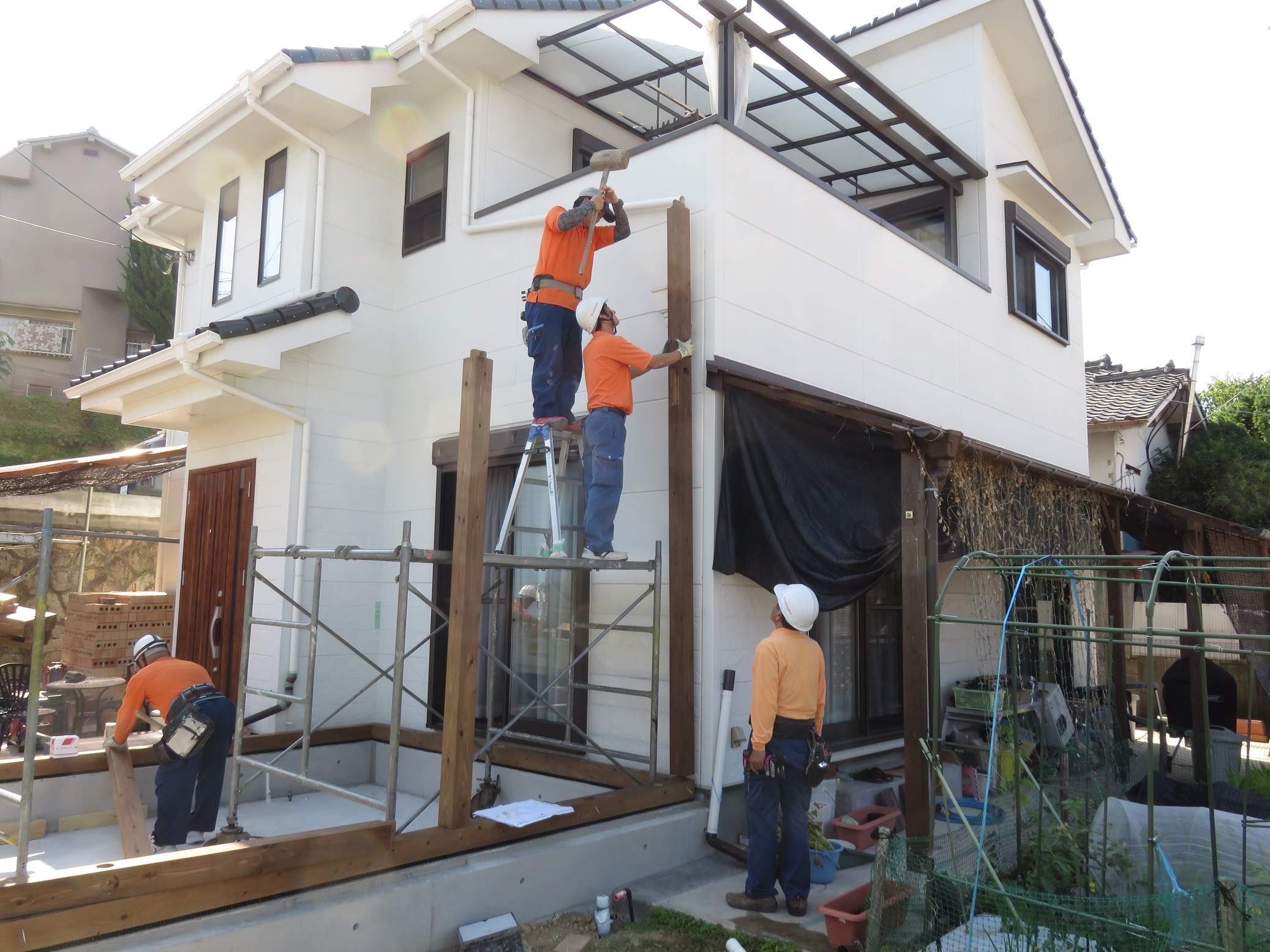 今回の工事の御施主様は、仕事で屋根工事や塗装工事をされてきたということで、工事を部分的に手伝って頂いております。