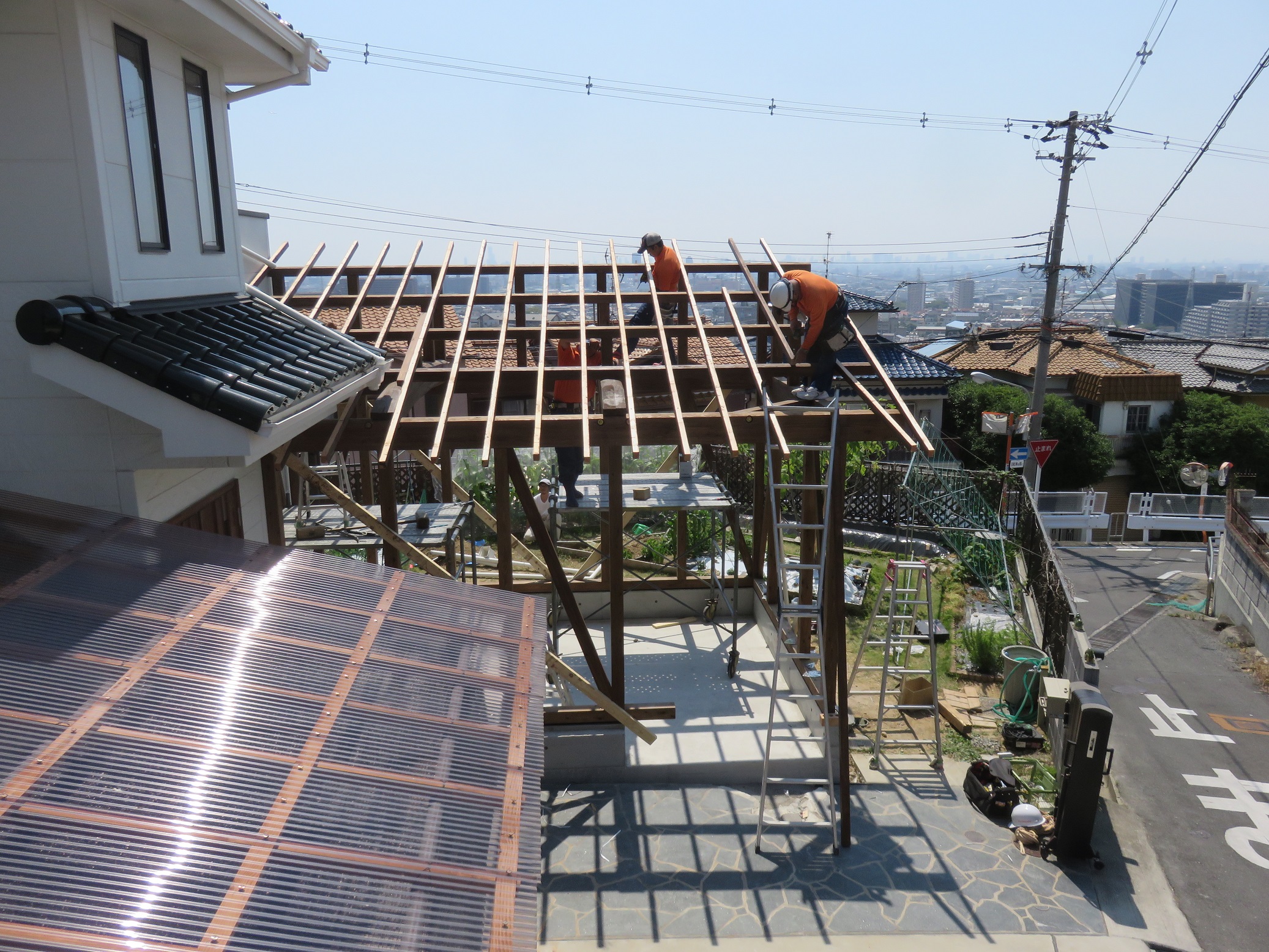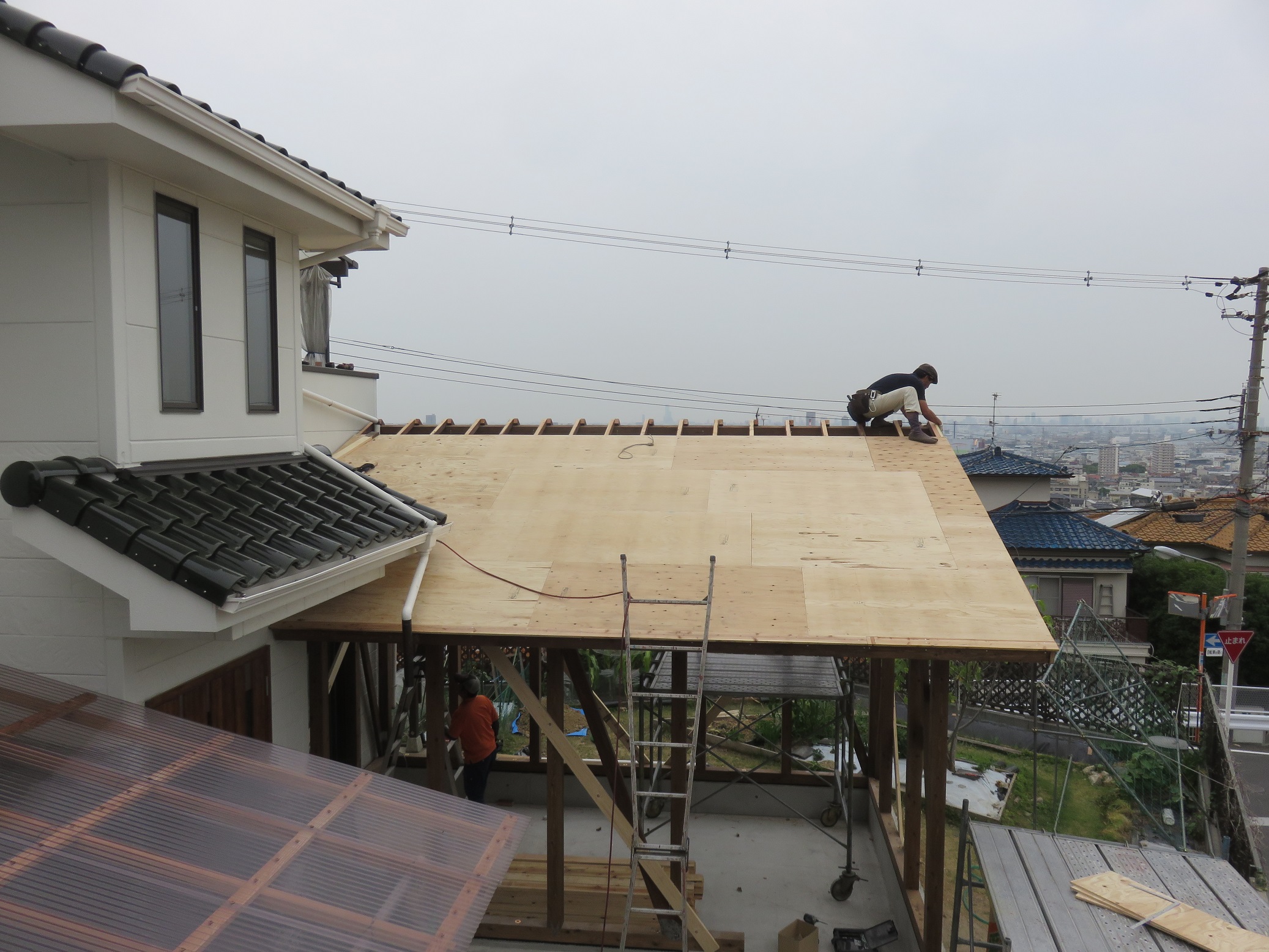 御施主様が屋根を造作していました。