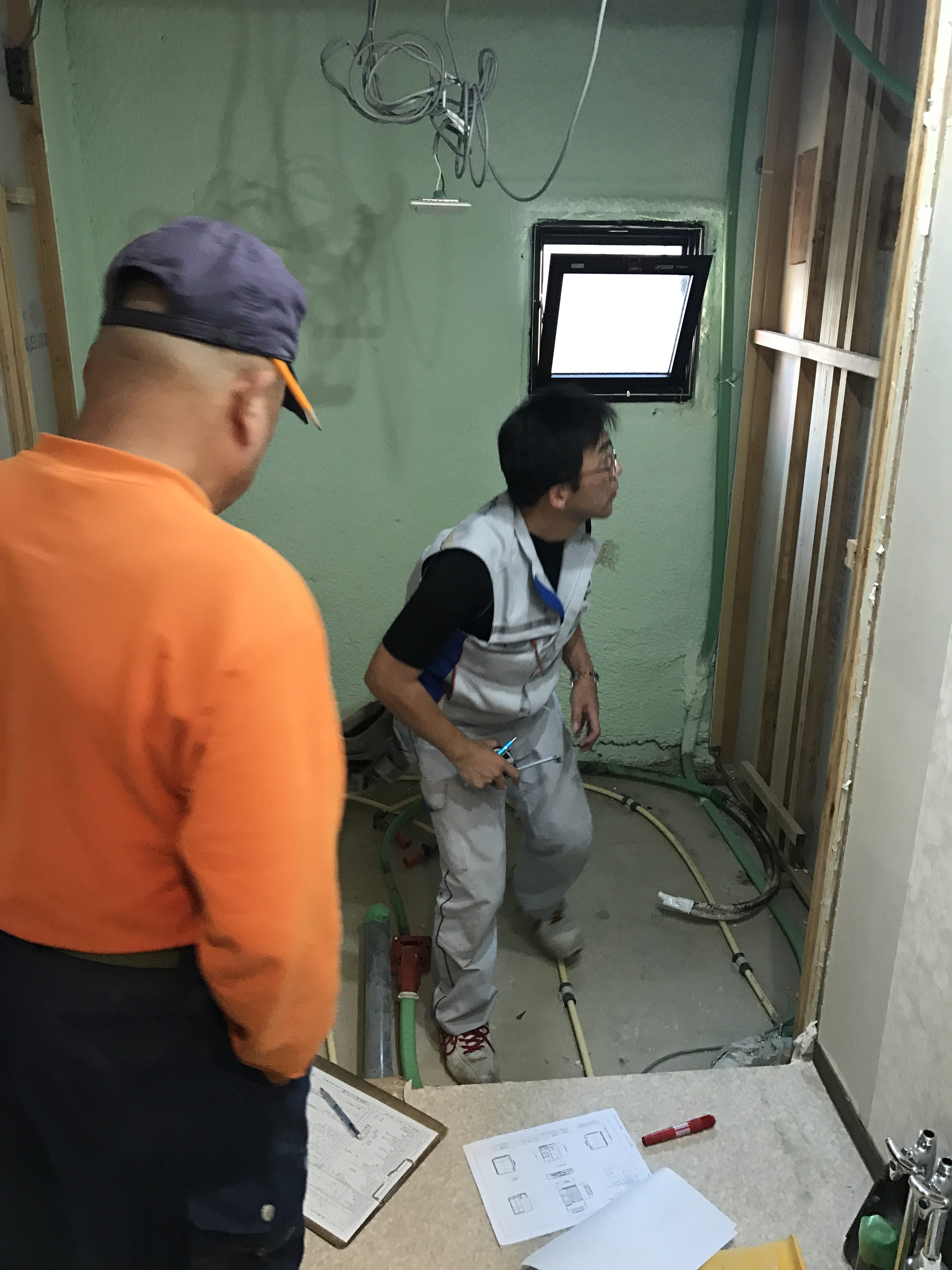 今はユニットバス入替工事をしています。