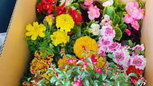 吉武カラーのマリーゴールドやペチュニア、芝桜などなど…