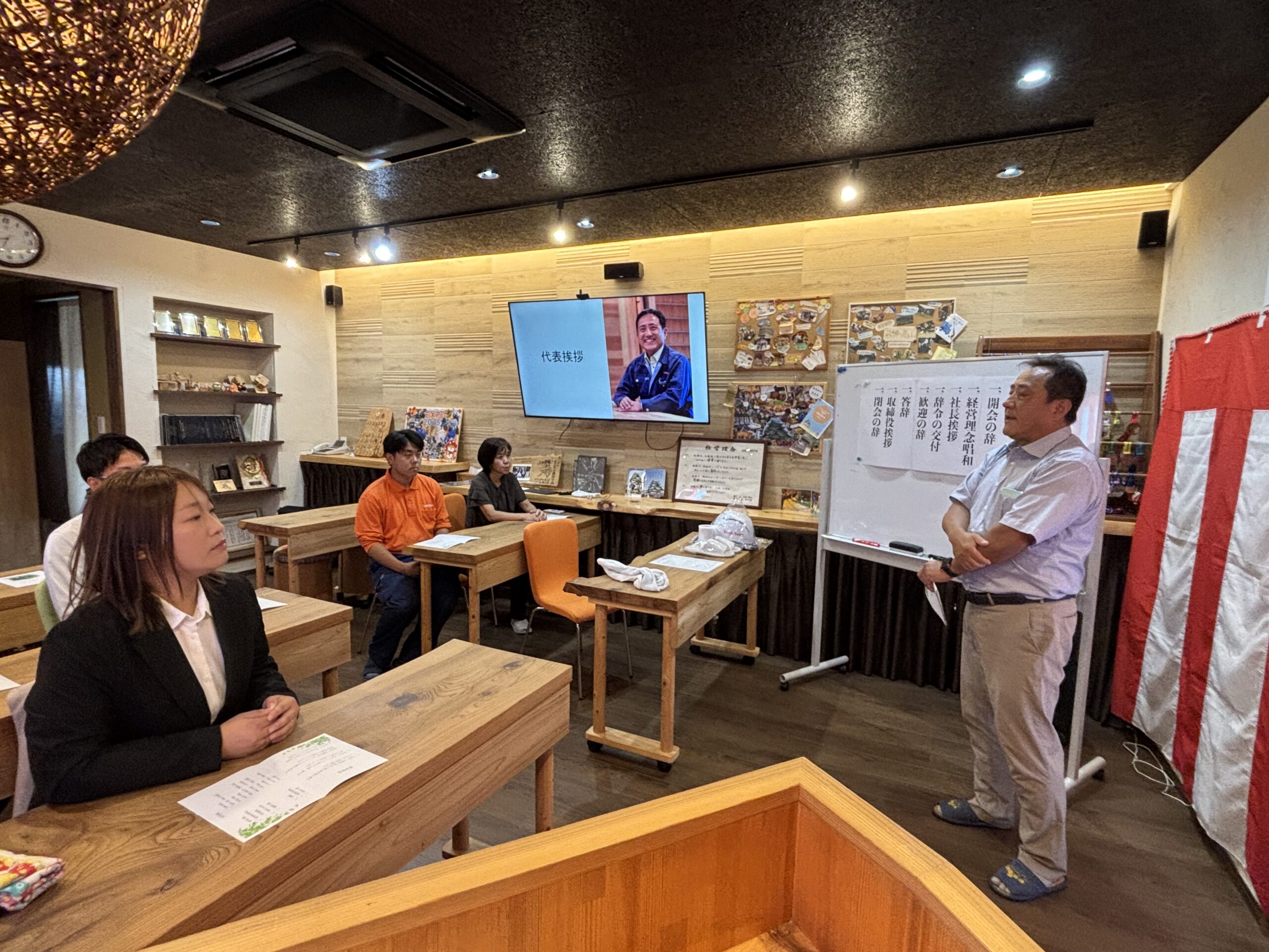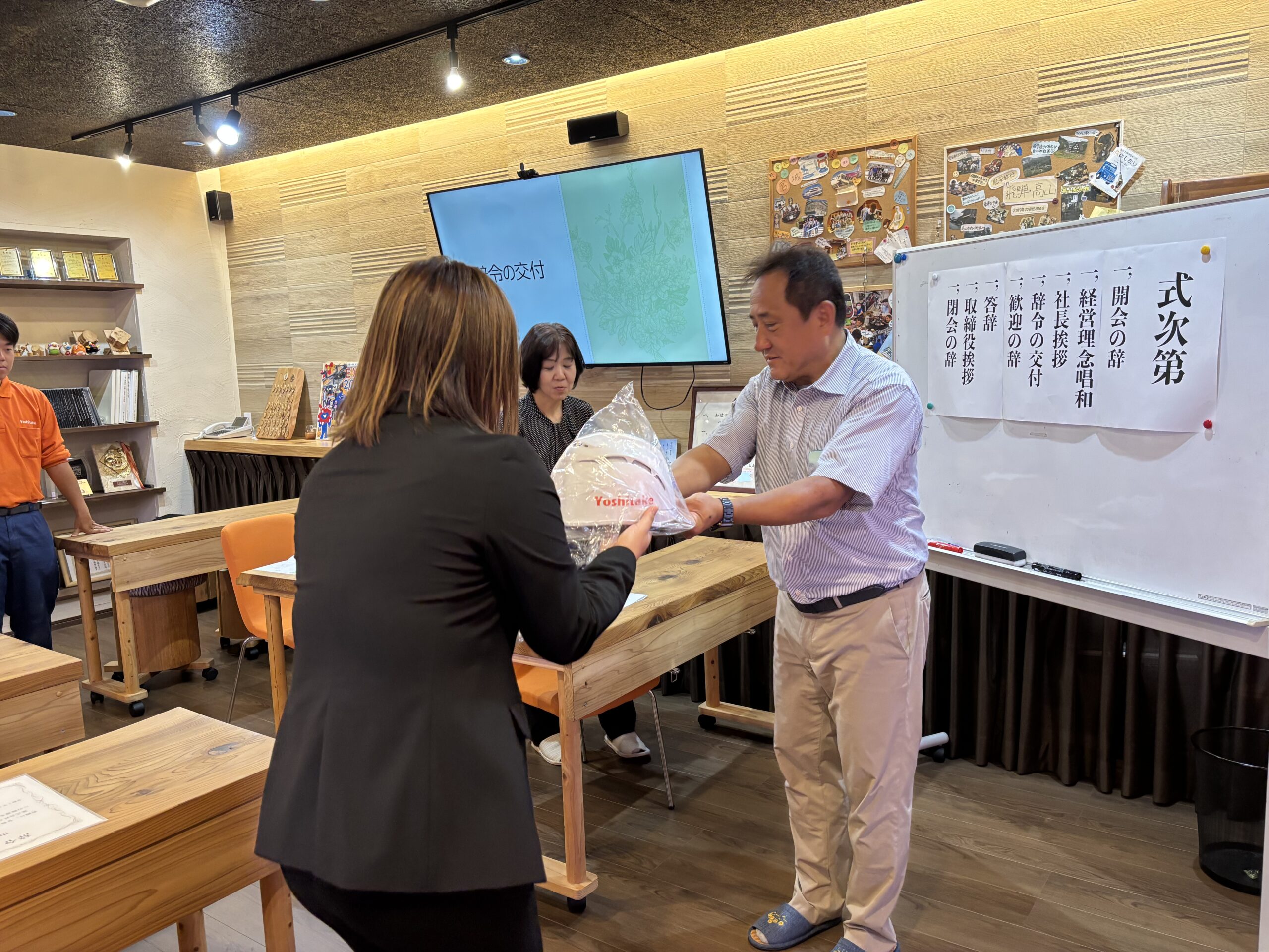 山嵜さんが現場で参加できず、急遽取締役挨拶は総務部の吉田さんがこなし