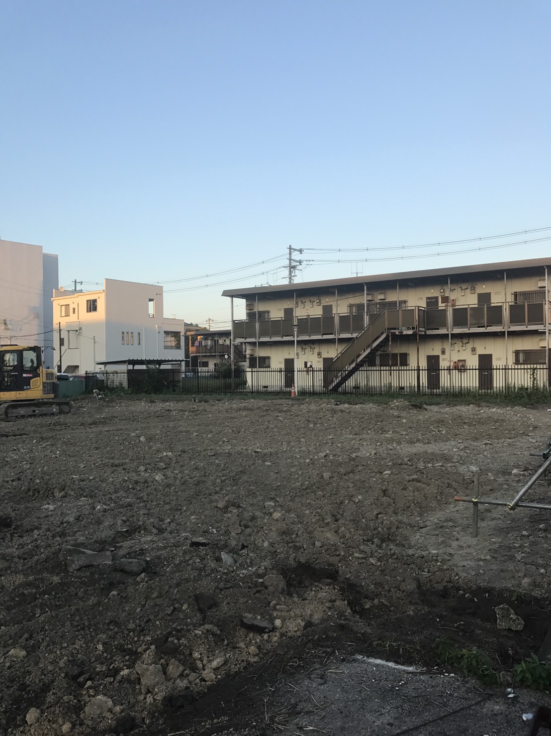 解体工事、建物の基礎の撤去が完了し、ただ今アスファルト等舗装材を撤去しております。