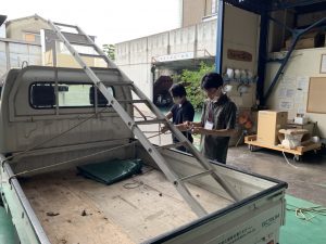 こちらは実際に、軽トラックにはしごを積み南京結びをしてもらっているところです。