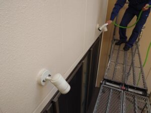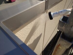 コーキング打ち、塗装完了後は外壁やサッシ周りに水をかけて、