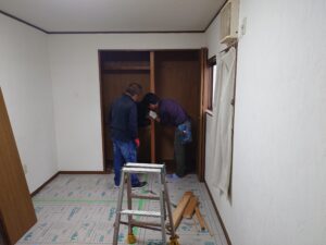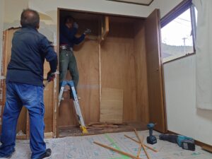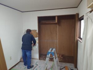先程解体していた浴室の内壁はこちらのクローゼットに繋がっています。