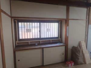 既存窓の撤去が完了したら、次は新しい窓を取り付けるための下地造作をします。