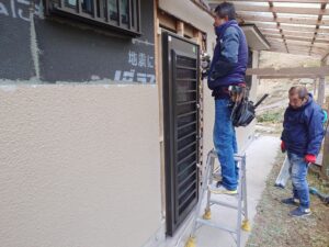 今回の工事では、1階の窓を全て交換し、余分な窓開口は外壁で埋めていきます。