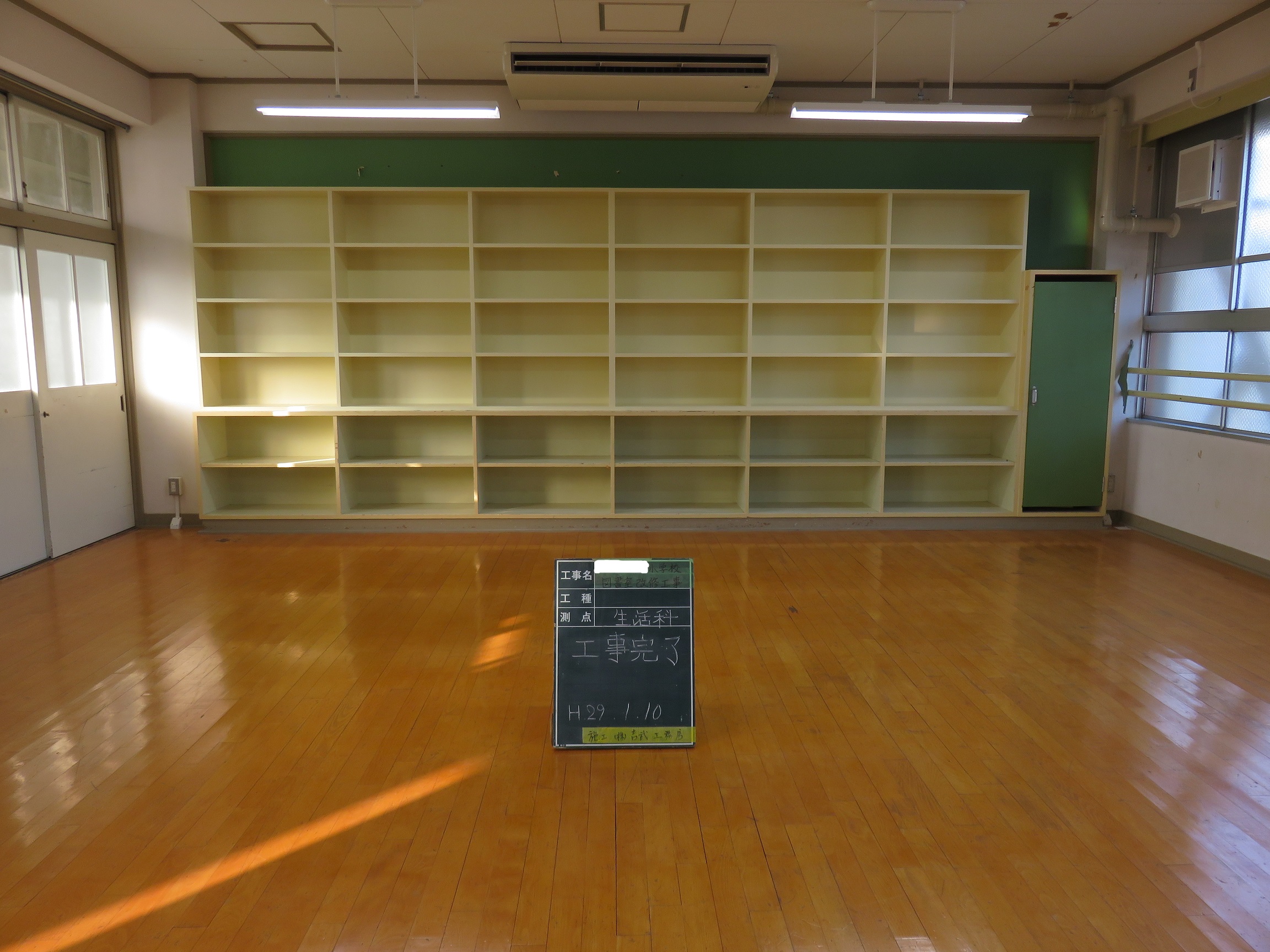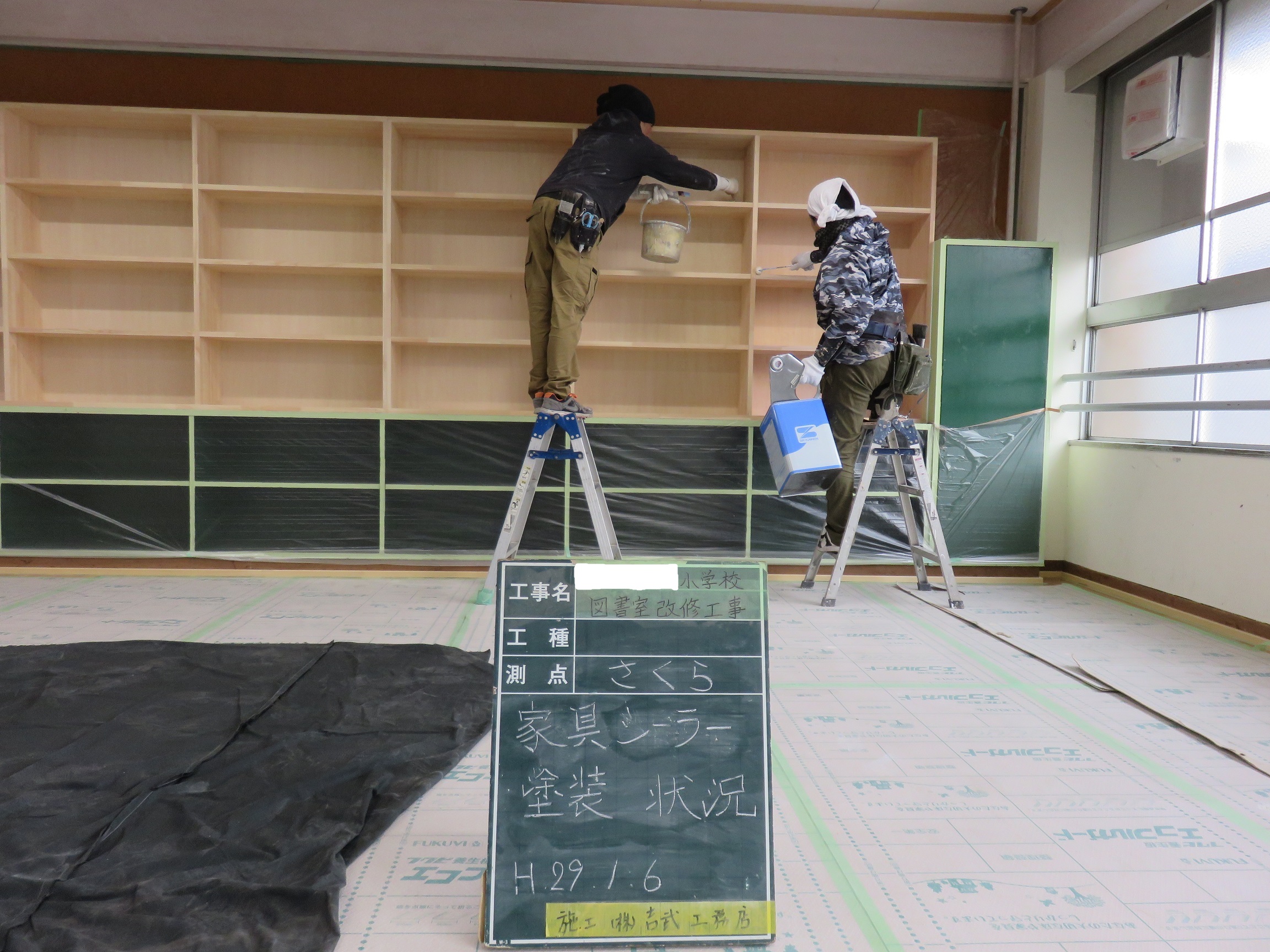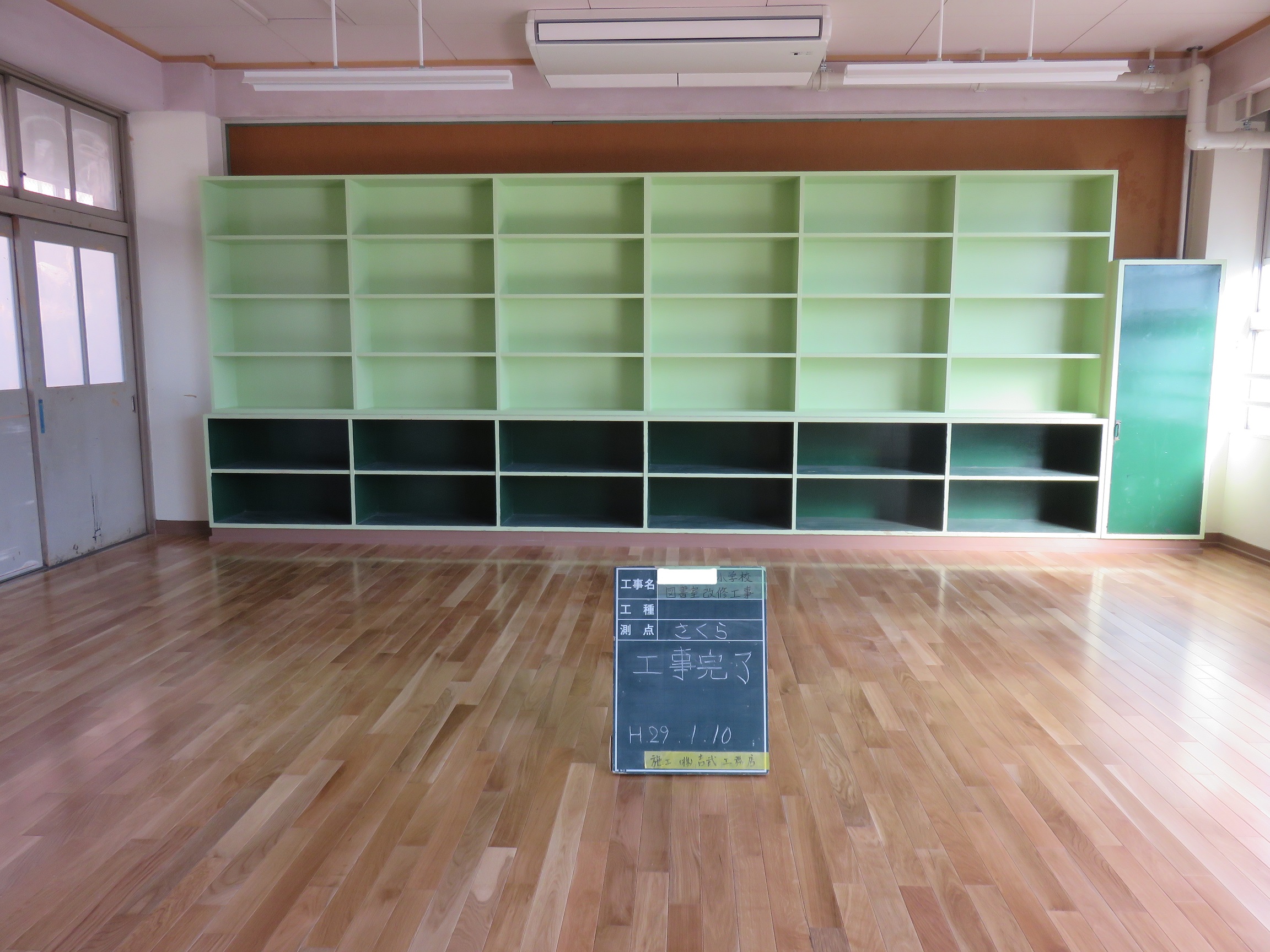 2枚の写真の上の高学年図書室は床を全面張り替えています。