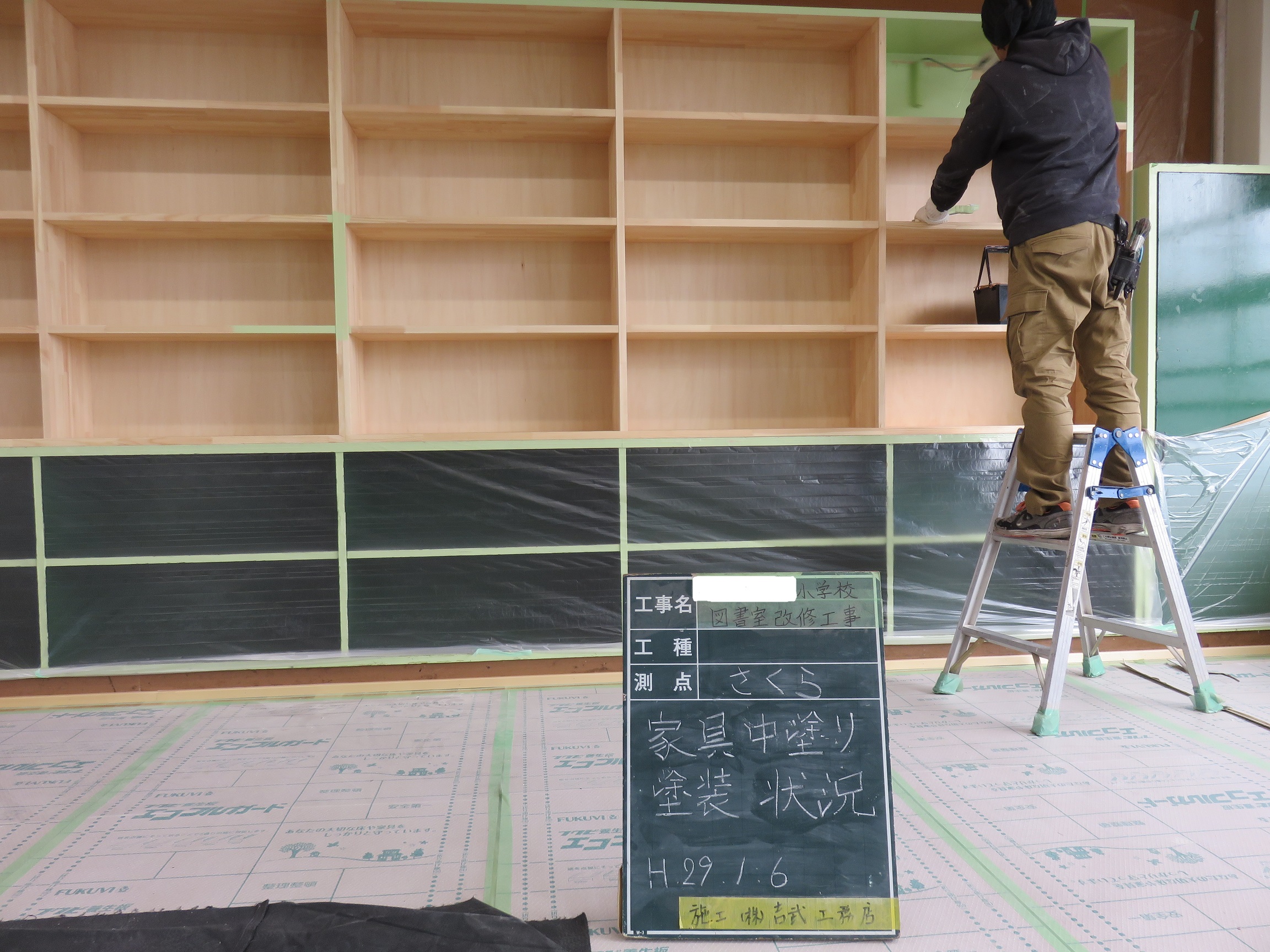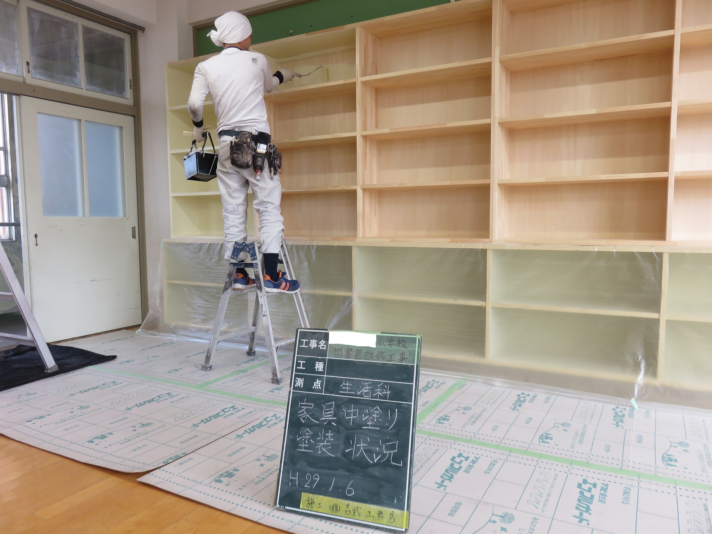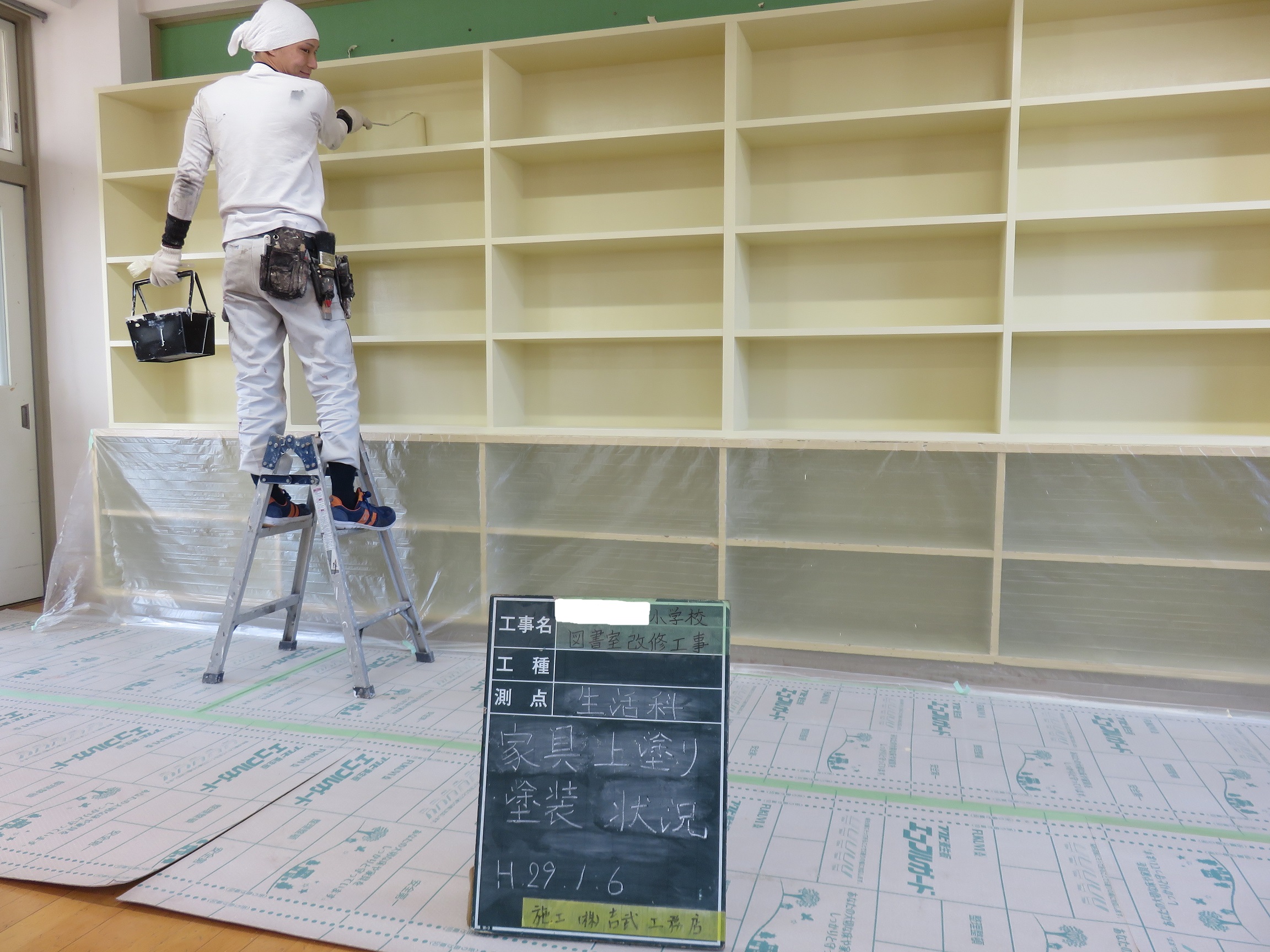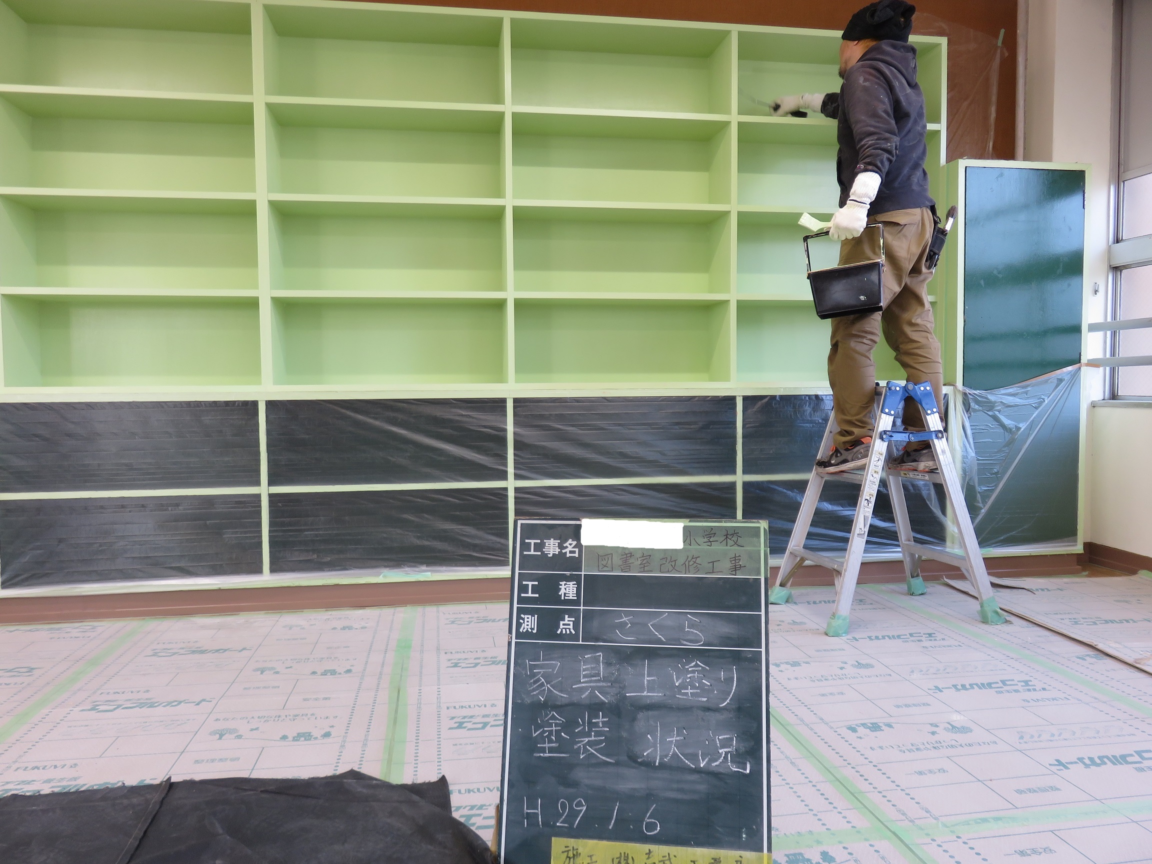 2枚の写真の上の高学年図書室は床を全面張り替えています。