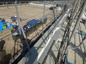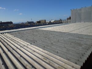 上の写真は体育館がある棟の屋根ですが、この上に断熱材(硬質ウレタンフォーム)を