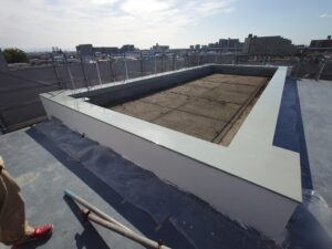 敷いて、その上に塩ビシート防水で仕上げていきます。