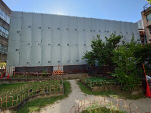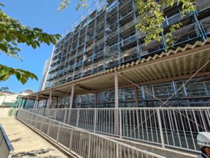現在、東大阪市にある小学校で外壁や屋上等の改修工事を行っています。