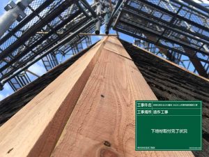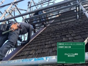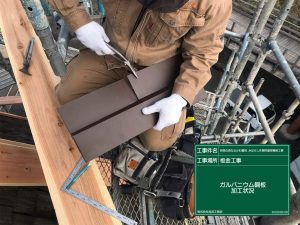 続いて、ガルバニウム鋼板という耐久性に優れた材料を張っていきます。