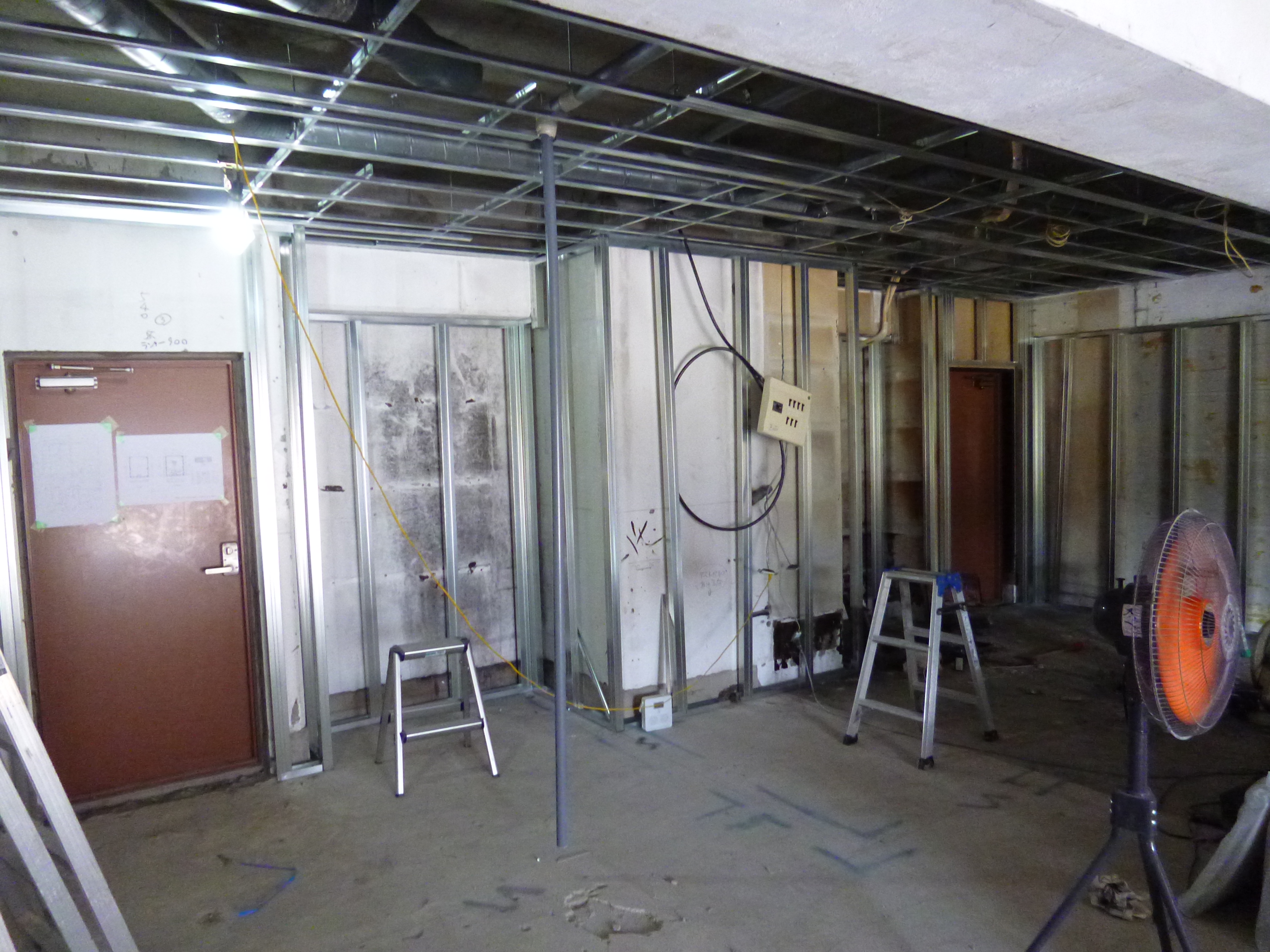 やっぱり軽鉄は早いです!明日から設備配管や電気配線等、仕込み作業が始まります!
