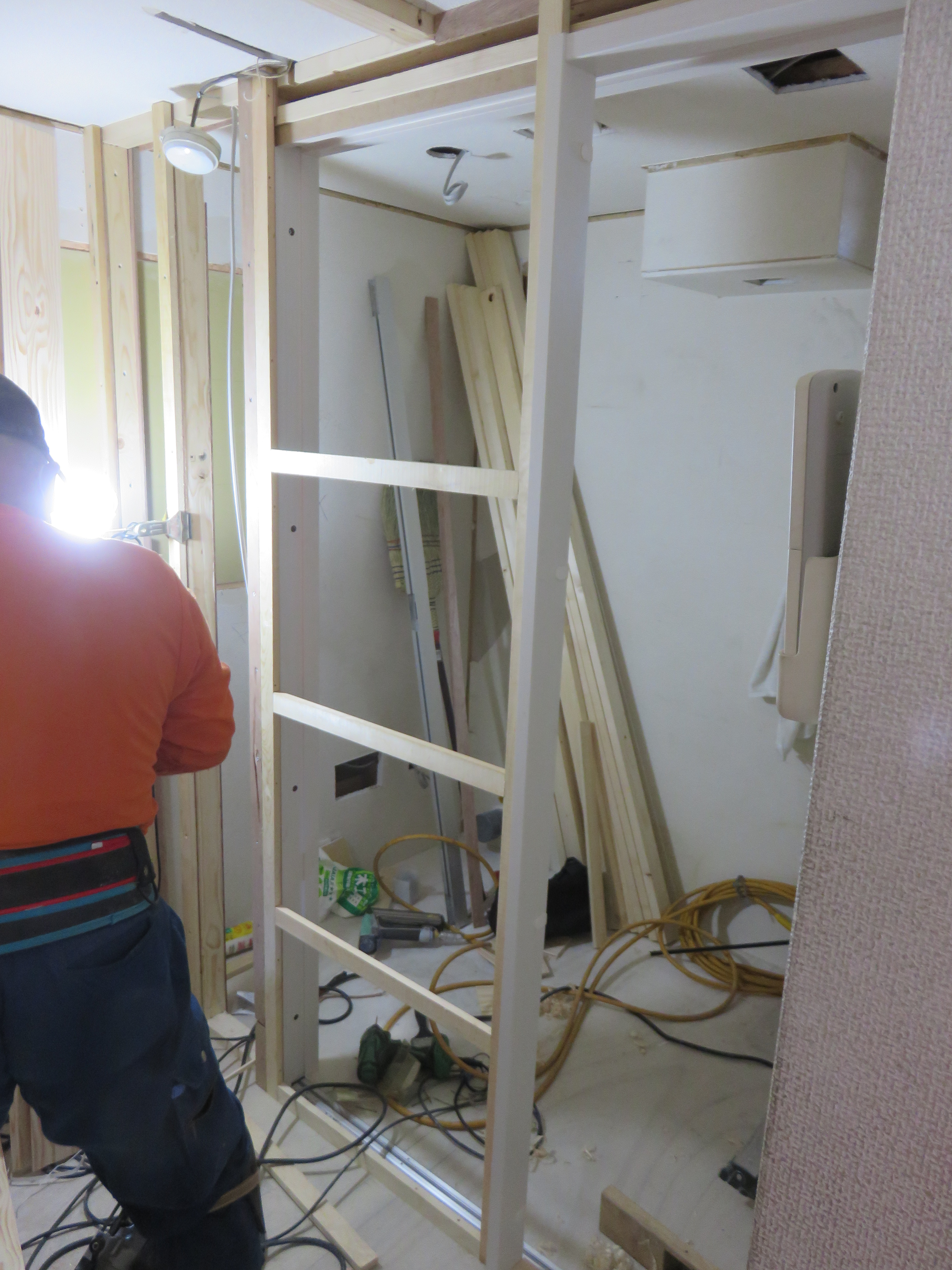 そして今度は女子トイレと女子更衣室の間仕切り壁の