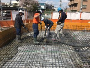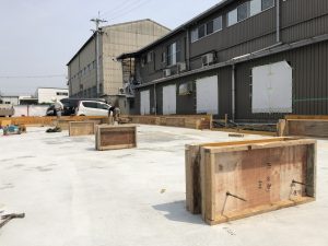 こちらも同様に型枠を設置し、その中にコンクリートを流し込んでいきます。