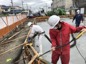 天候にも恵まれ、無事コンクリートを一面に打つことができました。