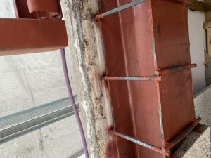 なぜH形鋼に鉄筋を溶接したかというと、そのままモルタルをH形鋼に塗っても落ちてしまうため、