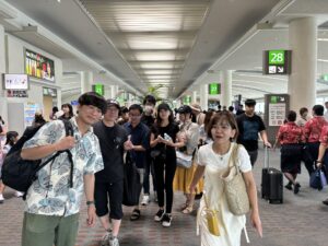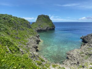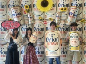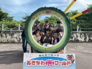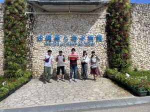 若者会〔青木さん・網さん・塩垣さん・山本〕はハートロックやオリオンビール工場見学・アメリカンビレッジ・美ら海水族館