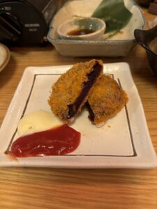 壁にInstagramフォロー&ストーリー投稿で『紅イモコロッケ』がもらえると貼ってあり