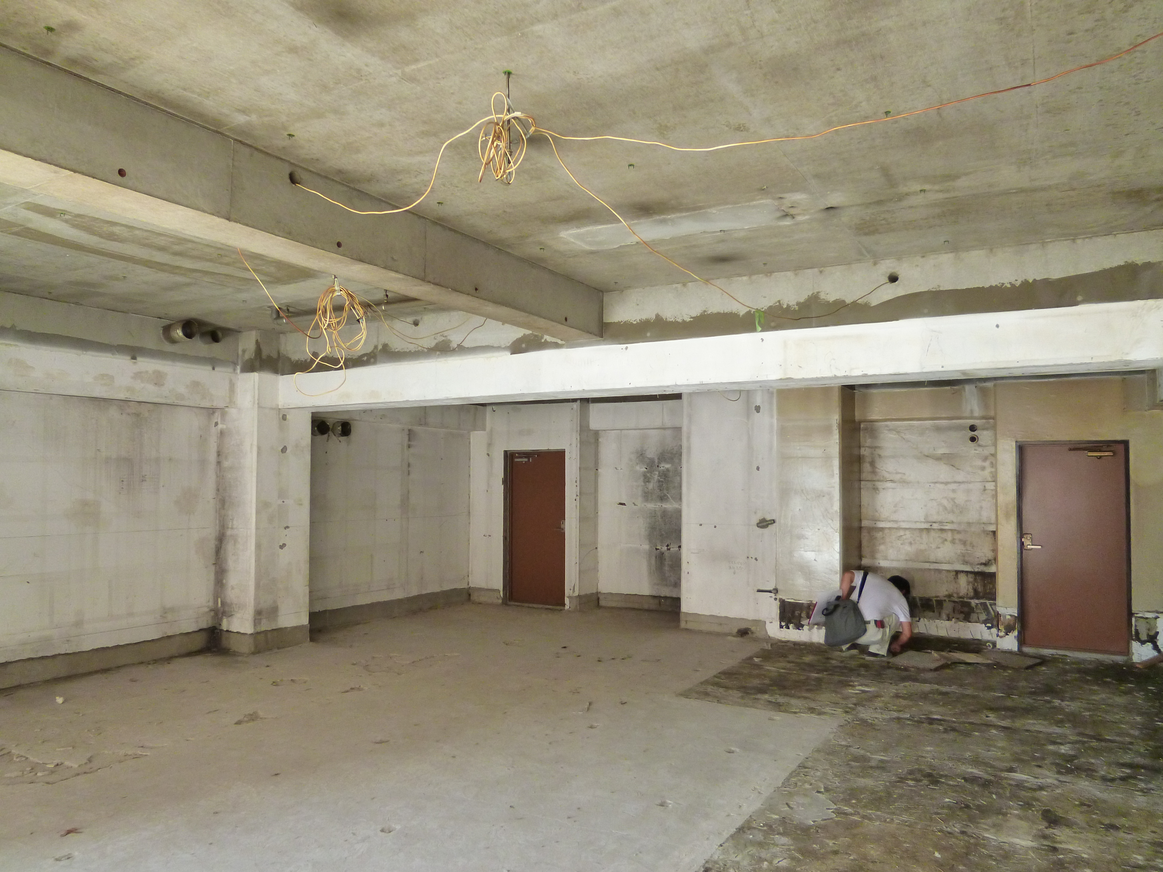 マンション2階のテナントスペース、現在はなにもないコンクリートむき出しの空間ですが10月1日には保育園へと生まれ変わります。