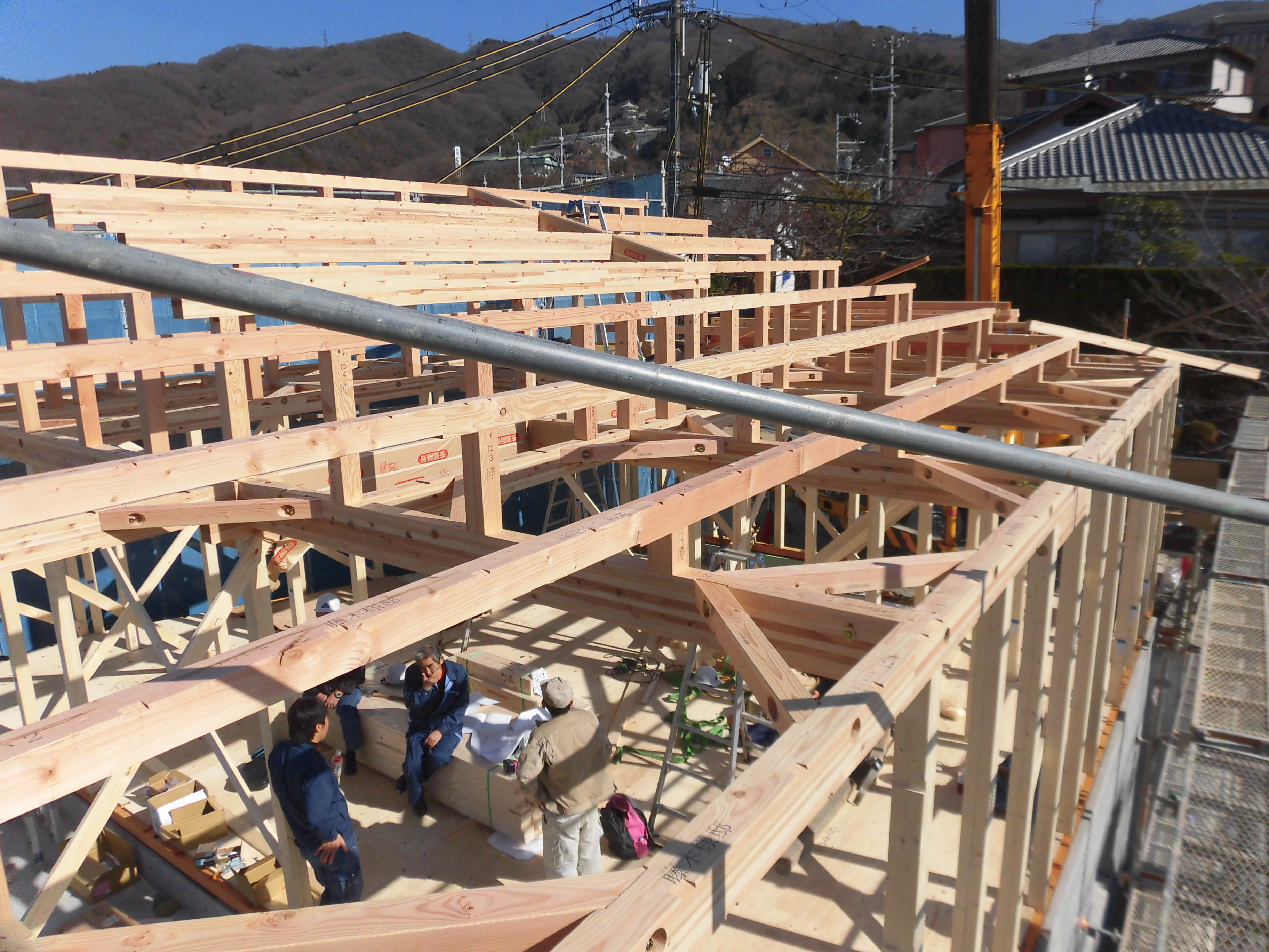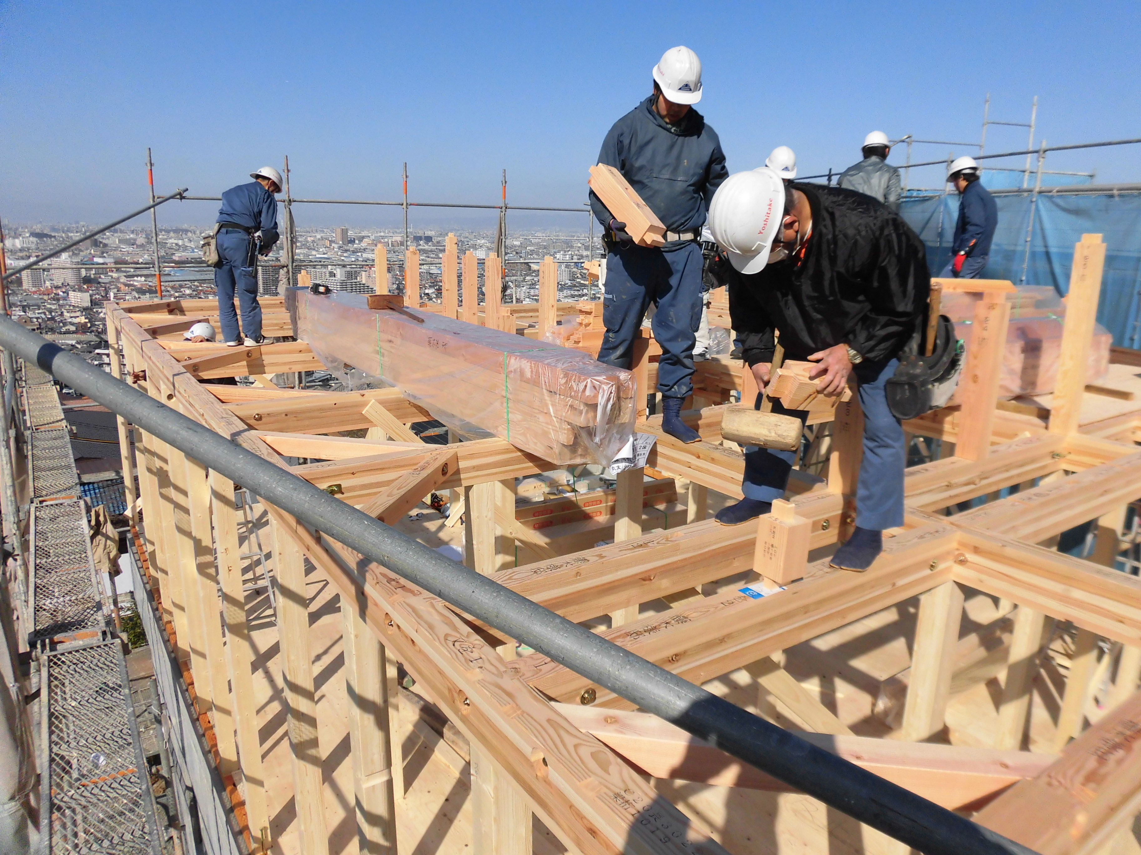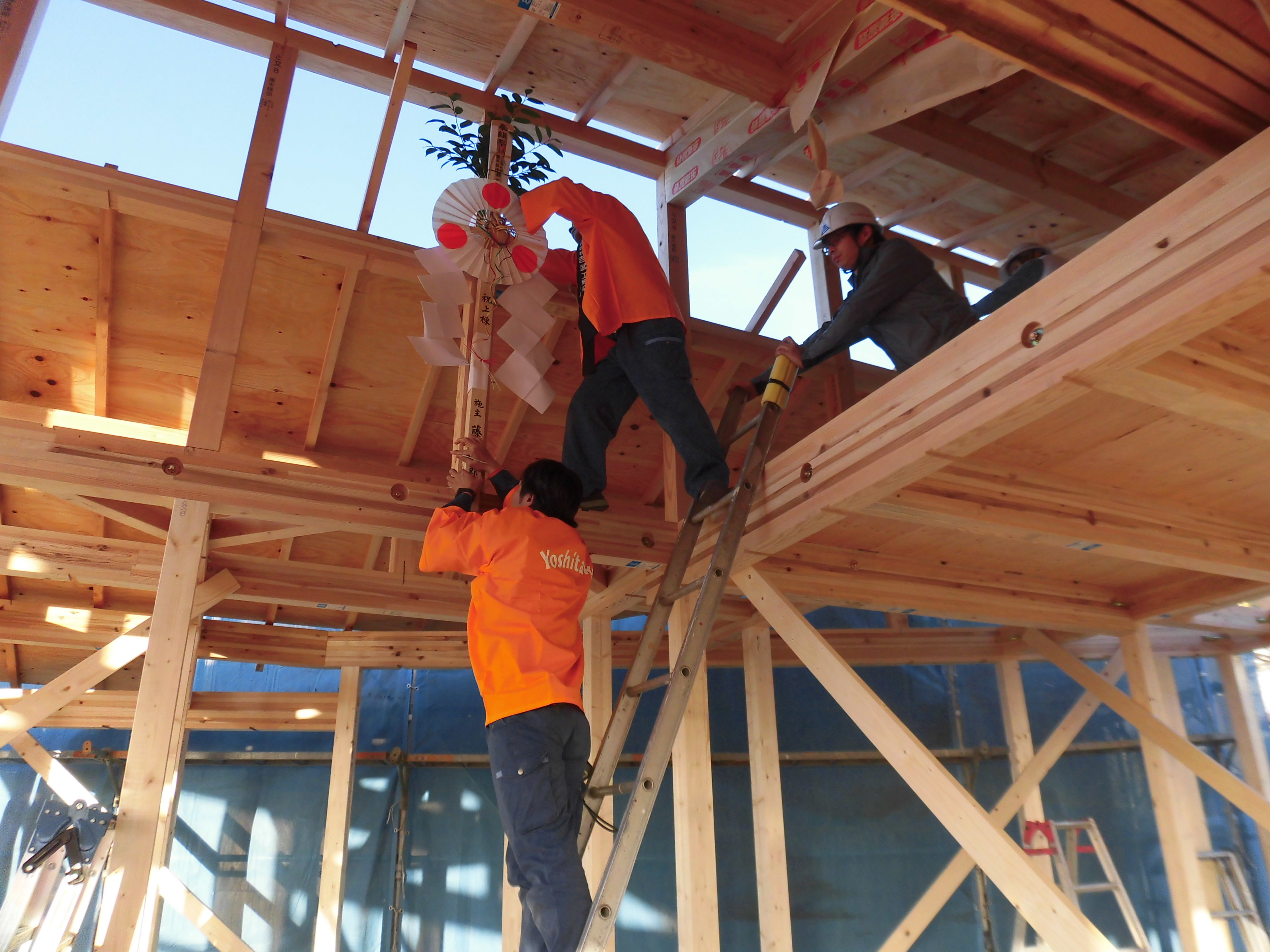 この日はありがたいことに、綺麗な青空で上棟日和でした!
