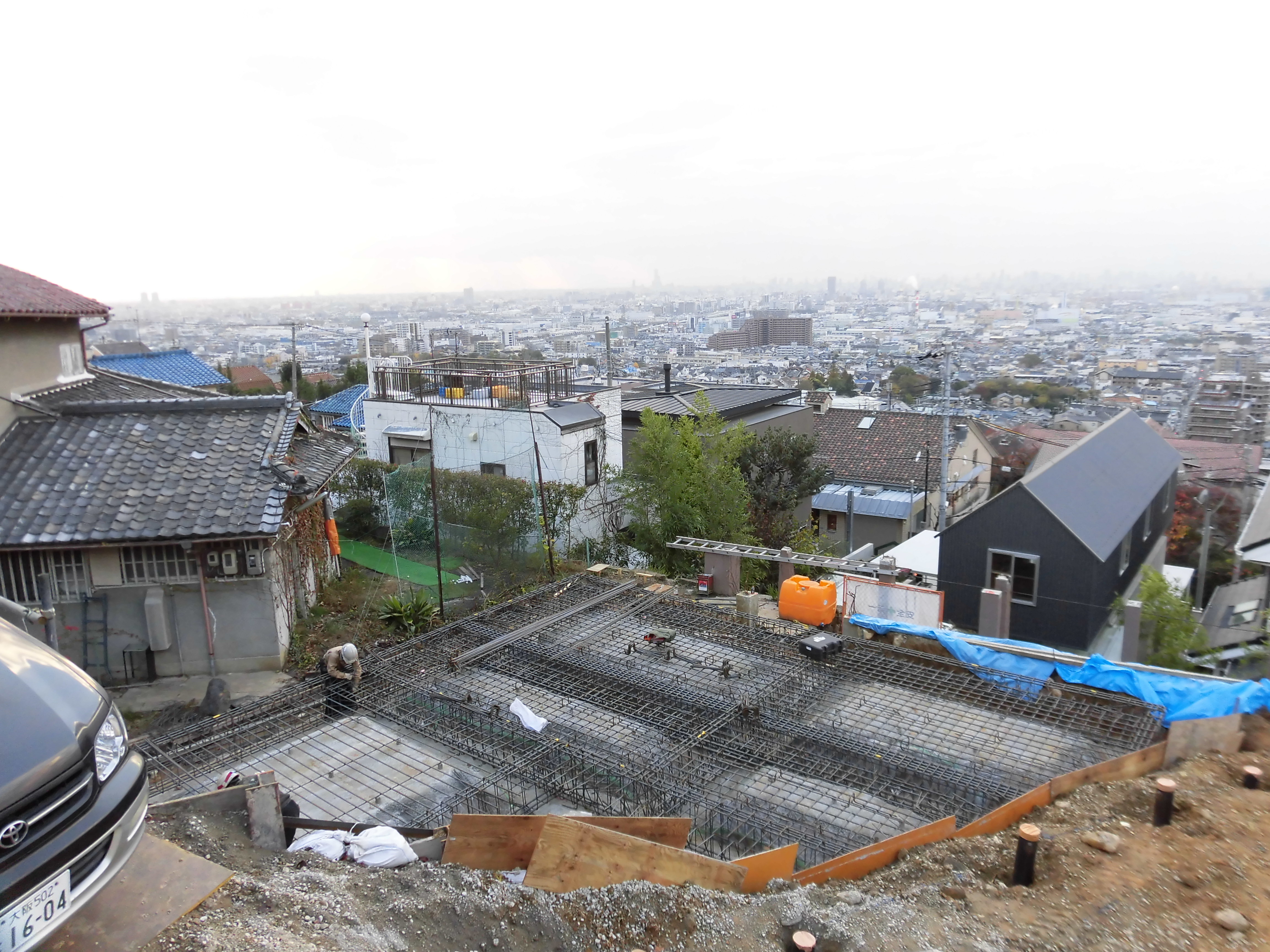 基礎配筋も段々出来上がってきています。安全には十分配慮して工事を行います。