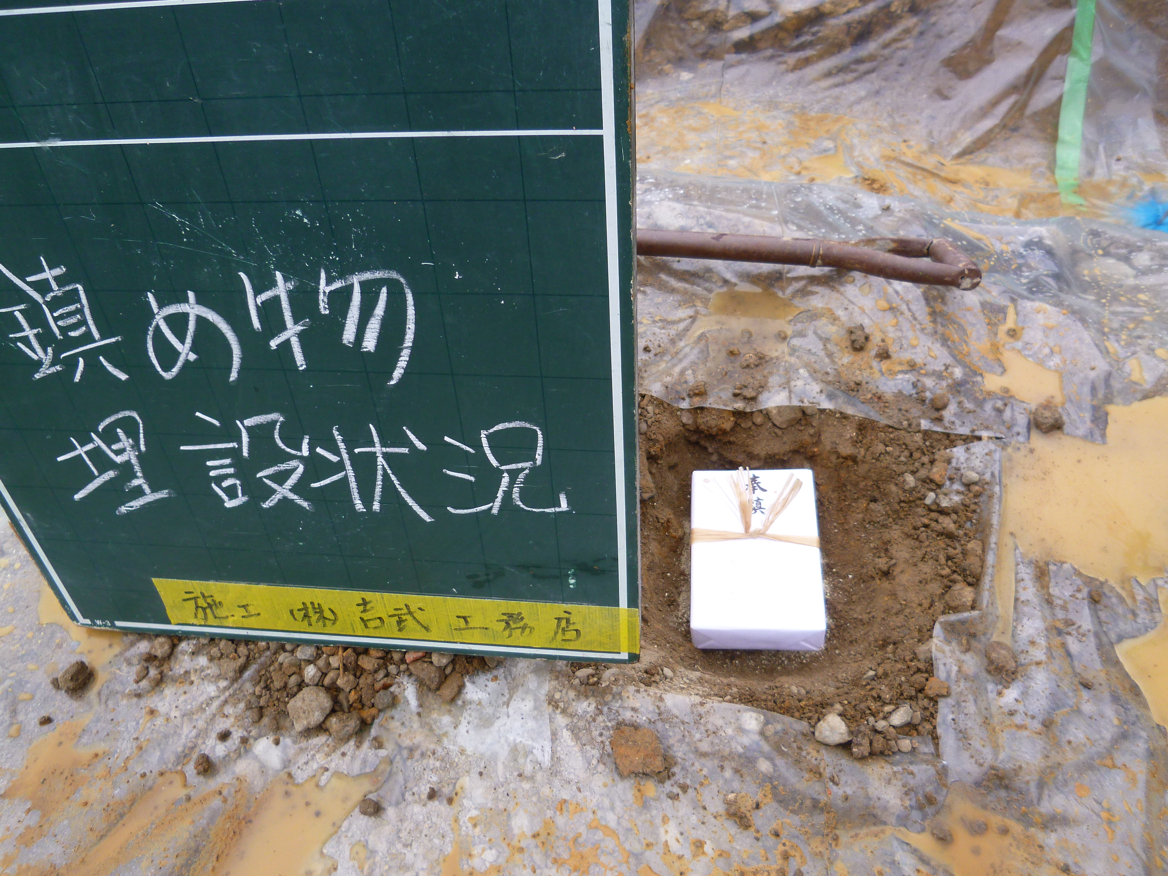 鎮め物の埋設も行い、明日捨てコンを打設します。