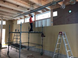 2階の天井下地、壁下地、そして、石膏ボードを張っていきます。