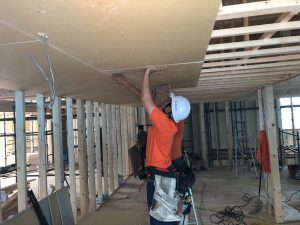 壁面は2階天井に使用した石膏ボードと同じものを張っていきます。