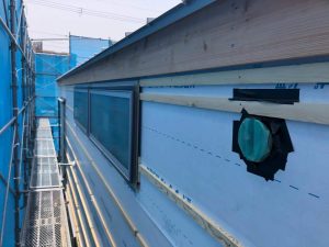 外壁はボードの耐力壁の上に透湿防水シート張り、胴縁という下地を組んで、