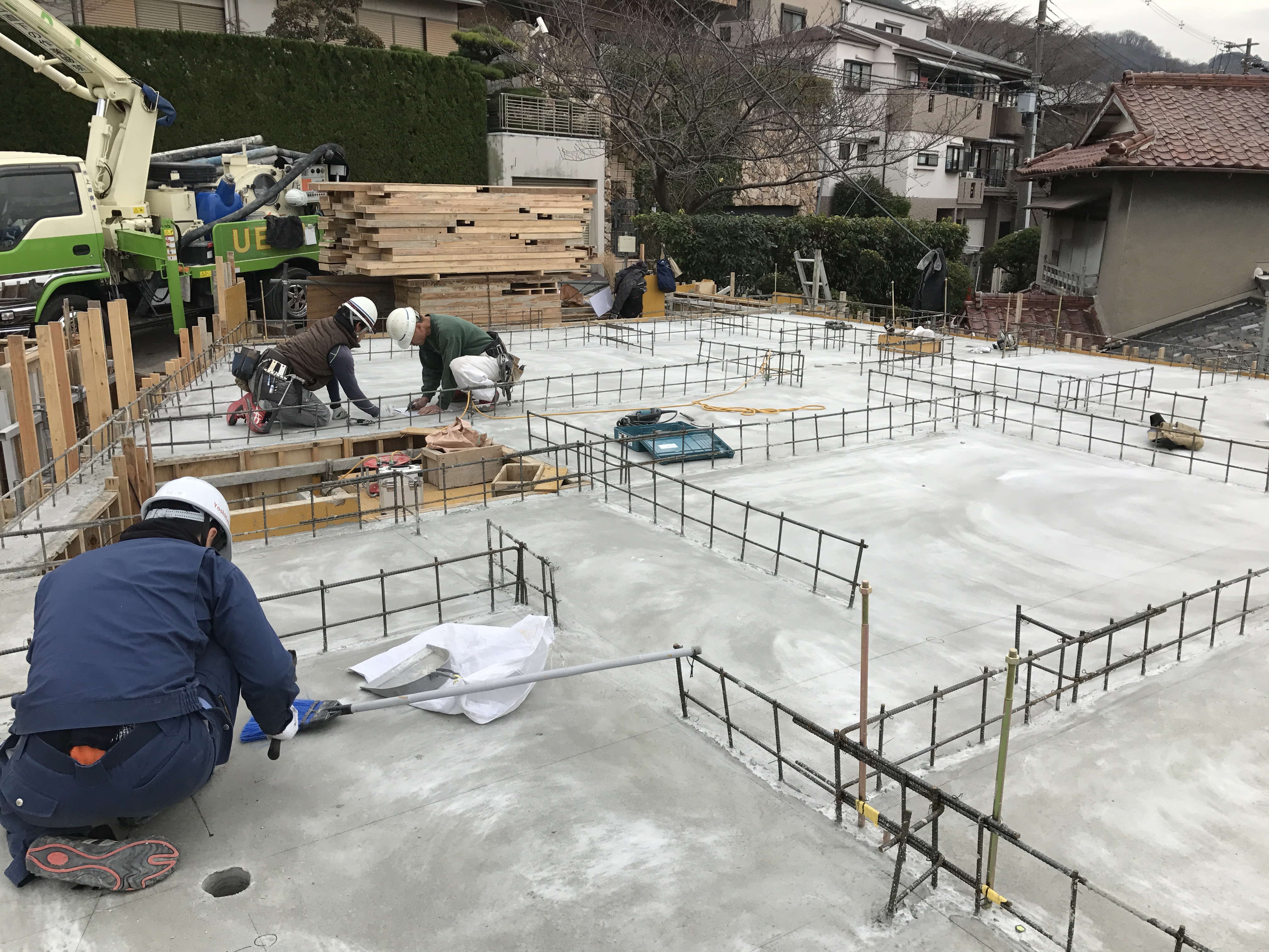新築現場、無事1階の躯体コンクリート打設完了しました!