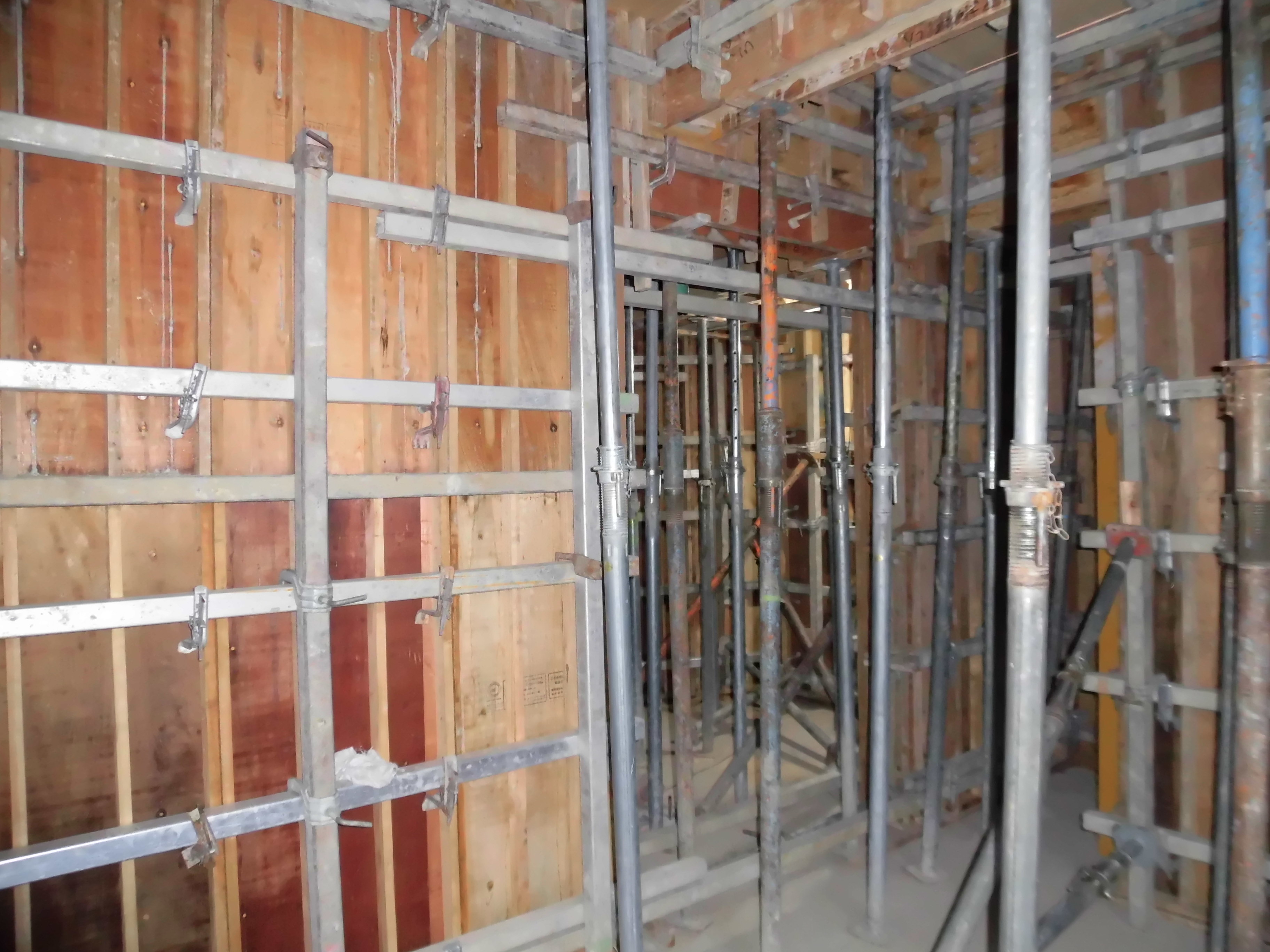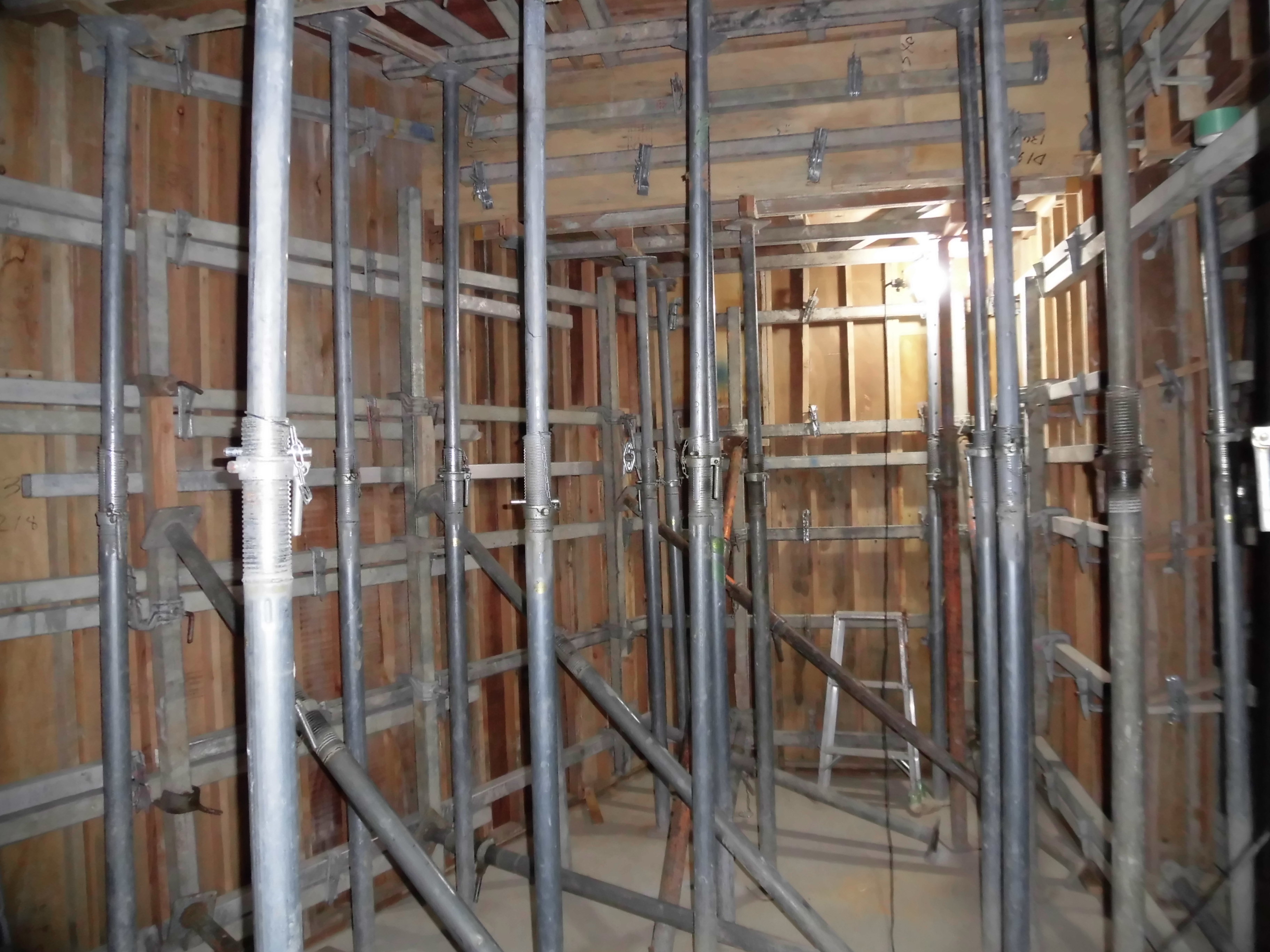 スラブ(2階の床下部分)に流し込まれたコンクリートを支えるために柱が何本もあります。