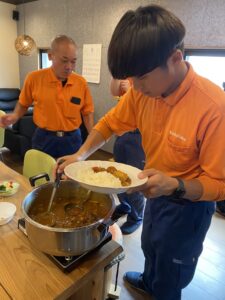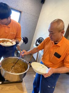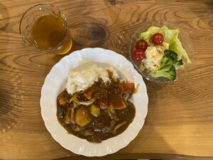 今期から開始した、営業部が月に一回ランチを作る『お楽しみランチ』記念すべき第一回目は野菜カレー&ポテトサラダでした♪