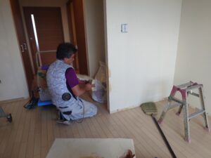今回は、壁のクロス貼り替えと、床の貼り増しを行っていきます。
