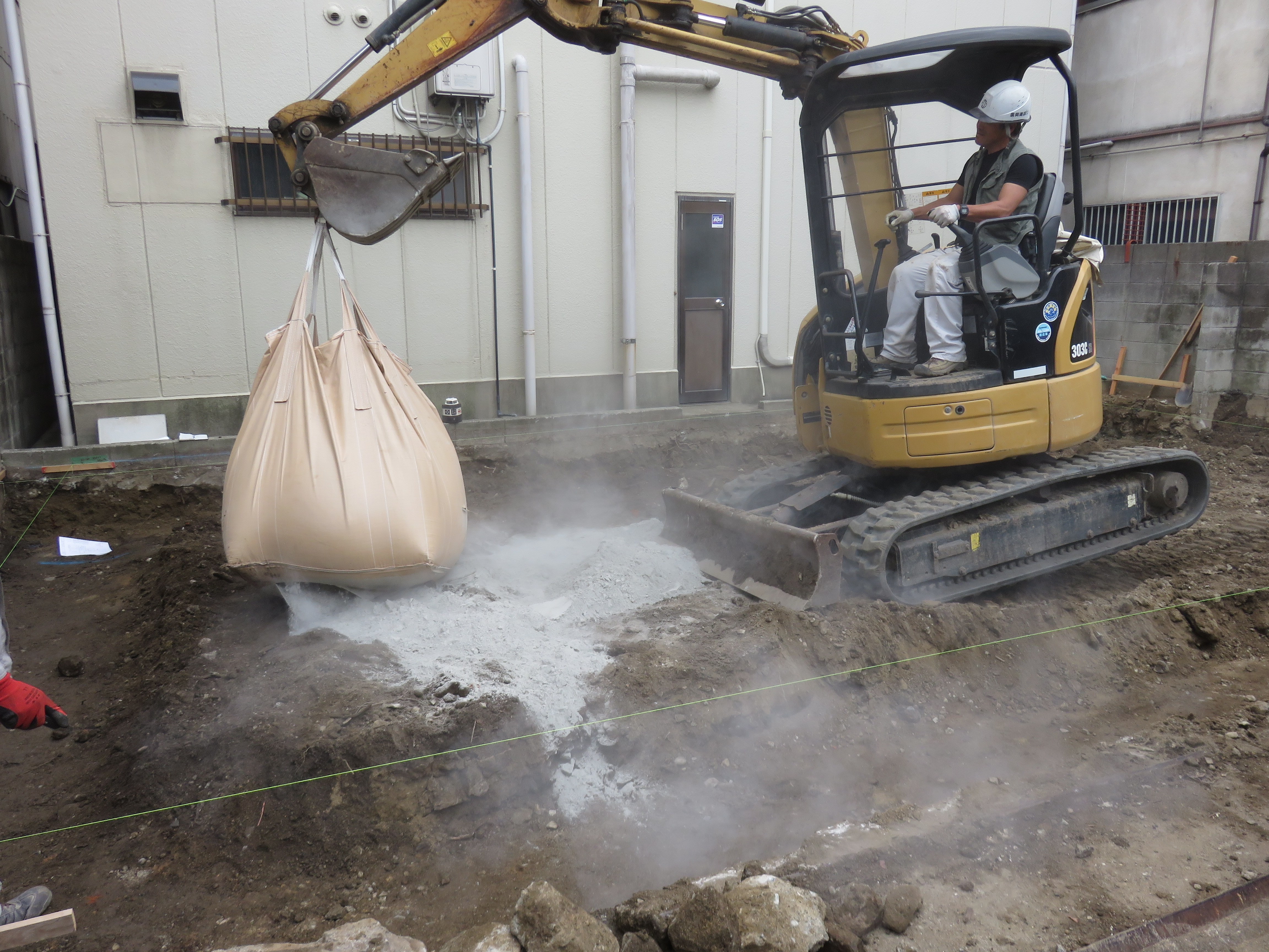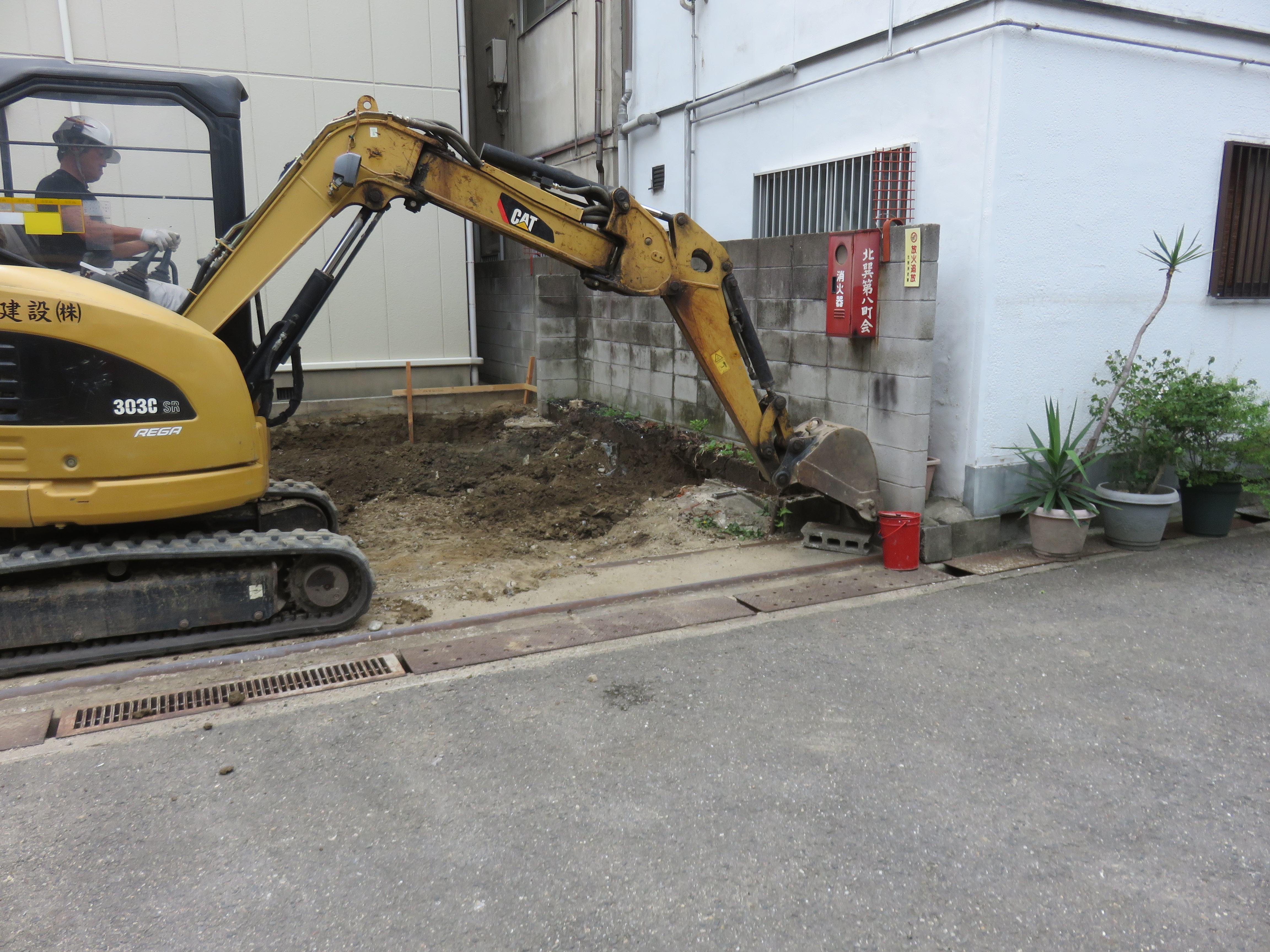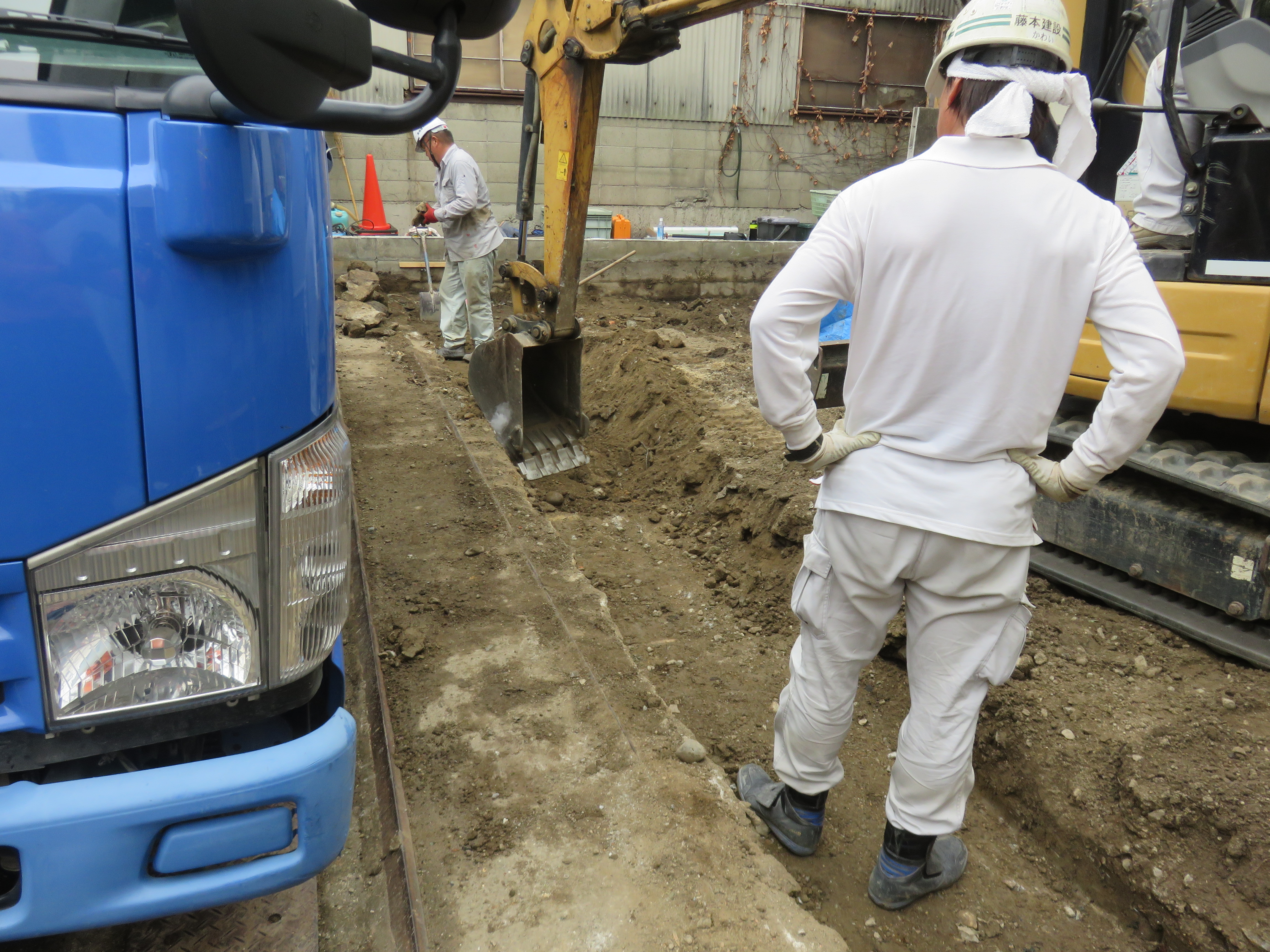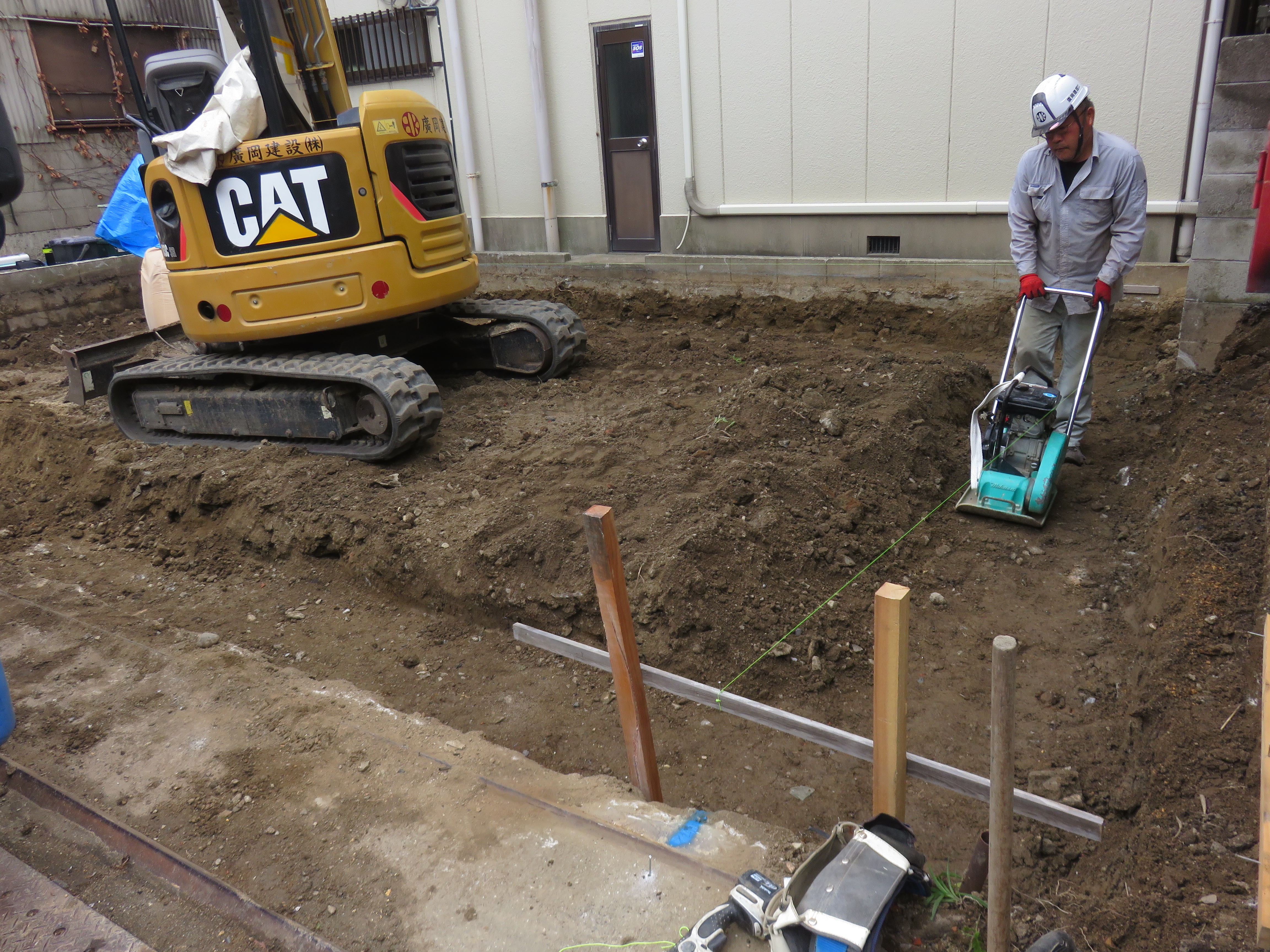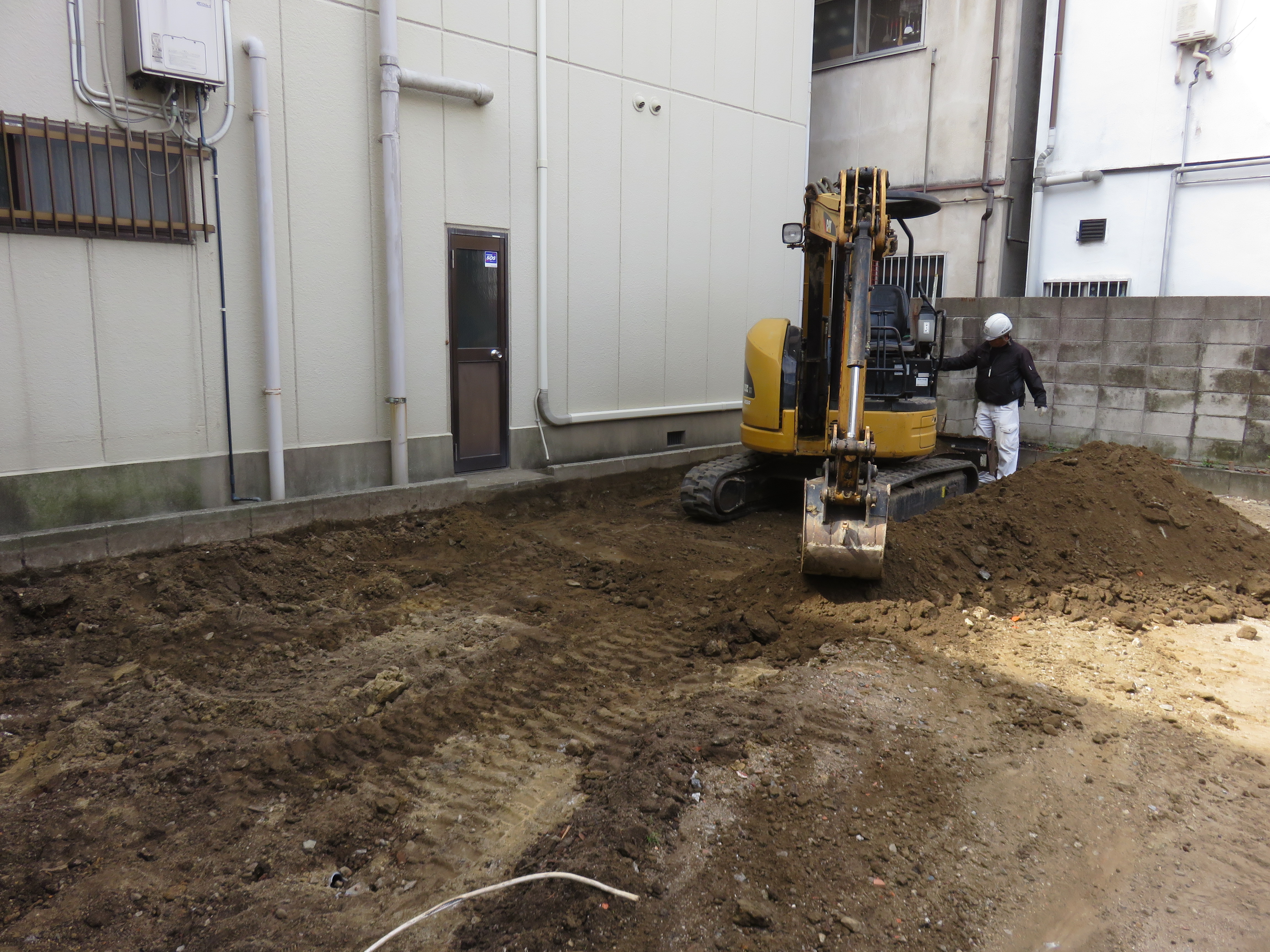まず、基礎を作るために敷地の地盤面下の土を掘削しました。