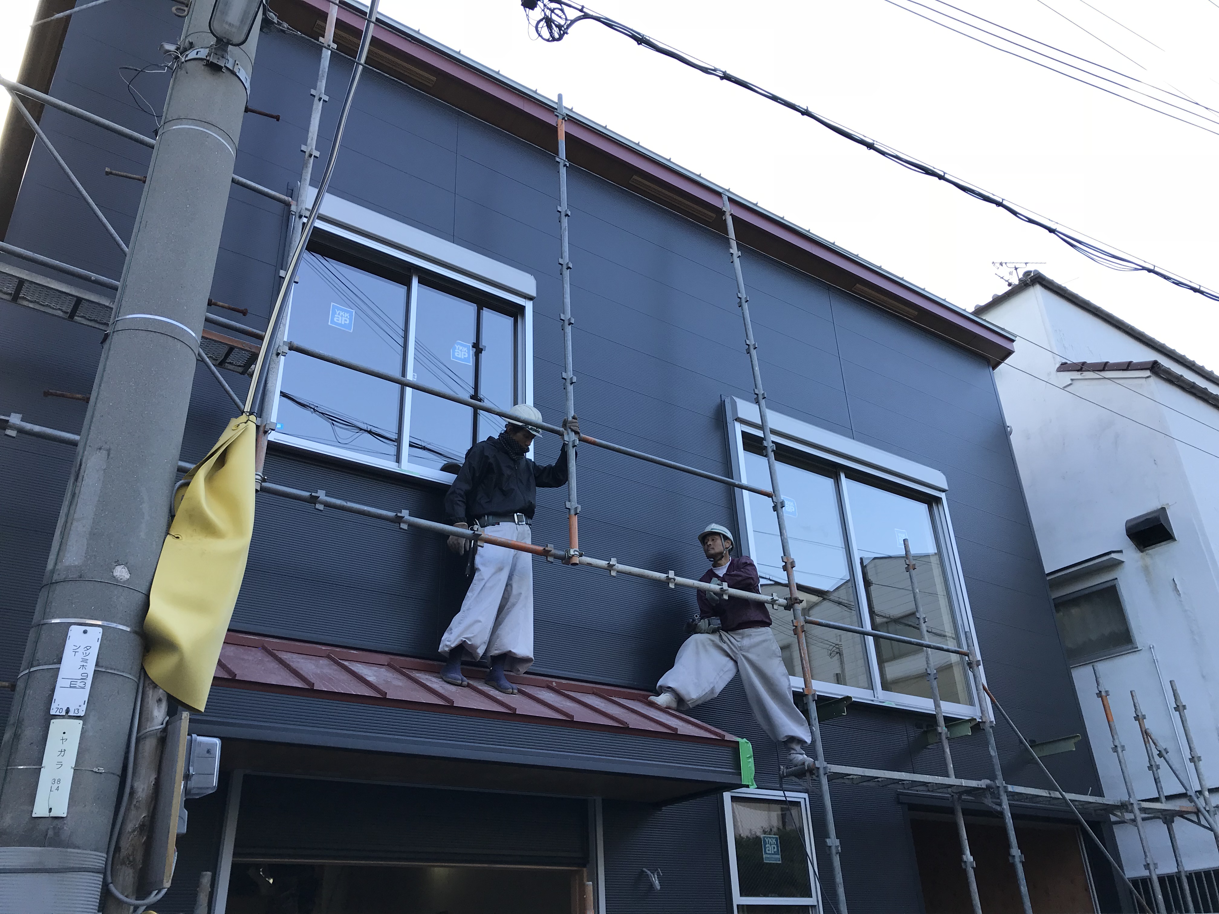 本日は足場バラシを行いました。外壁の金属サイディングがブラックなので少しのキズでも目立ちます。お隣さんとの境界が近いところもあるので当ててしまわないかヒヤヒヤしながら見ていました。事前にすっごい注意してバラしてくれと言っていたこともあり無事キズもなく終えることができました!