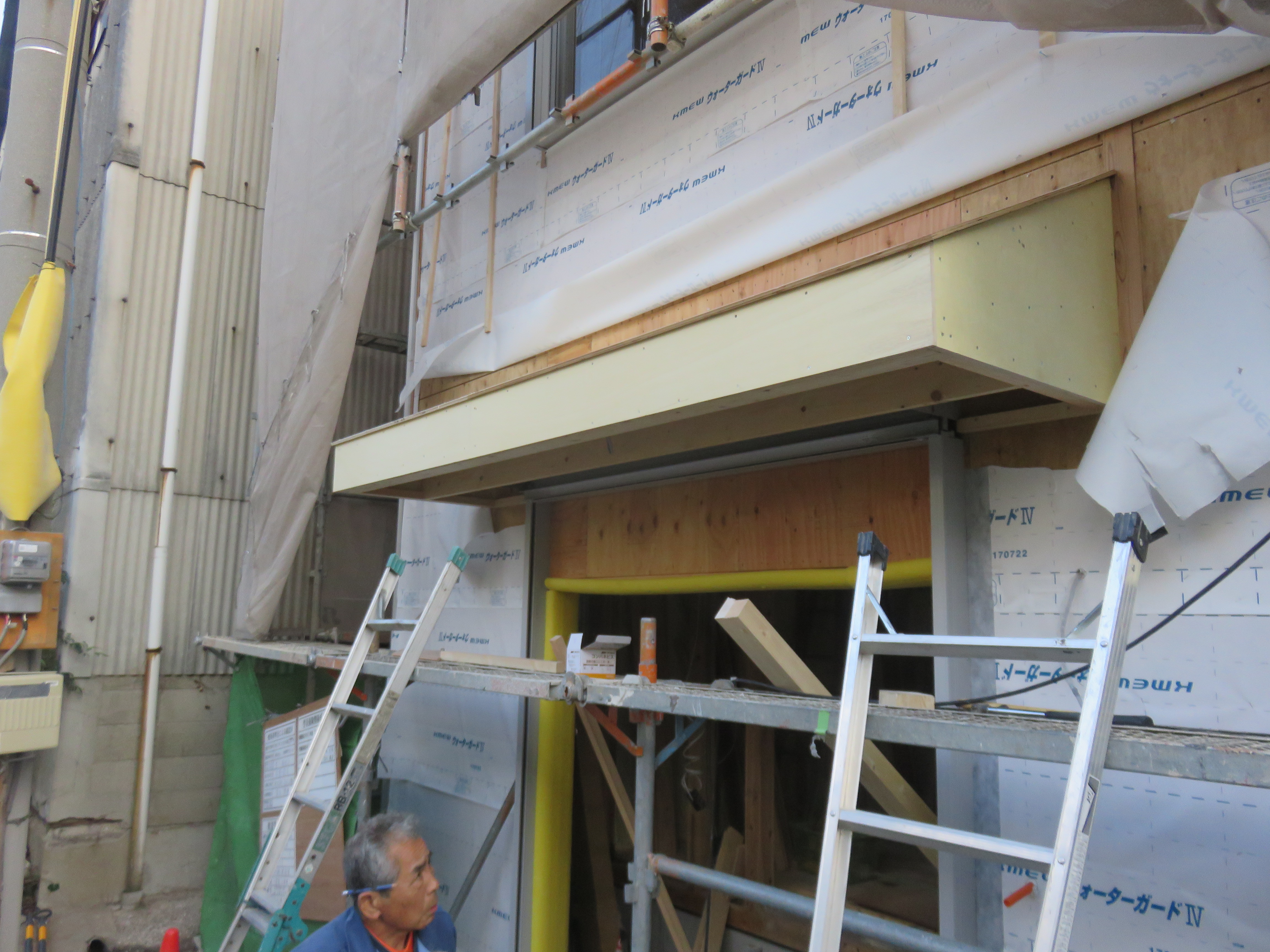 また、玄関のシャッターを囲う庇の造作を行いました。