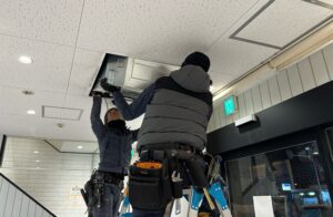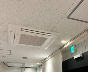 国道沿いの店舗内の空調機が調子が悪く、取り替えの依頼がありました。