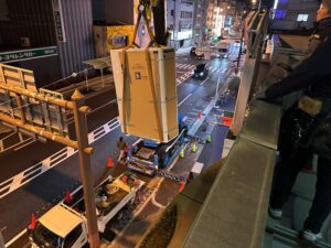 夜10時からでしか警察の許可が下りず夜間作業になりました。
