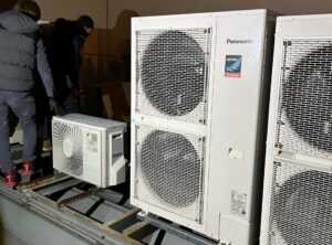 屋根上に室外機があり、入れ替えるのに道路上でのレッカー作業が必要で