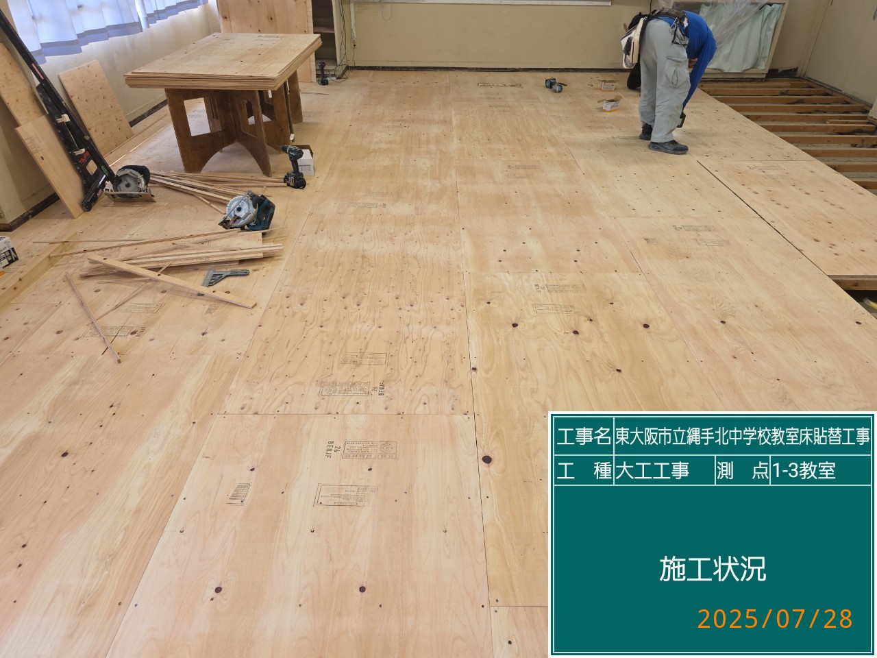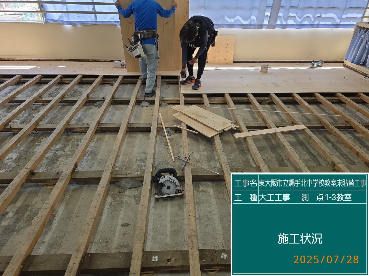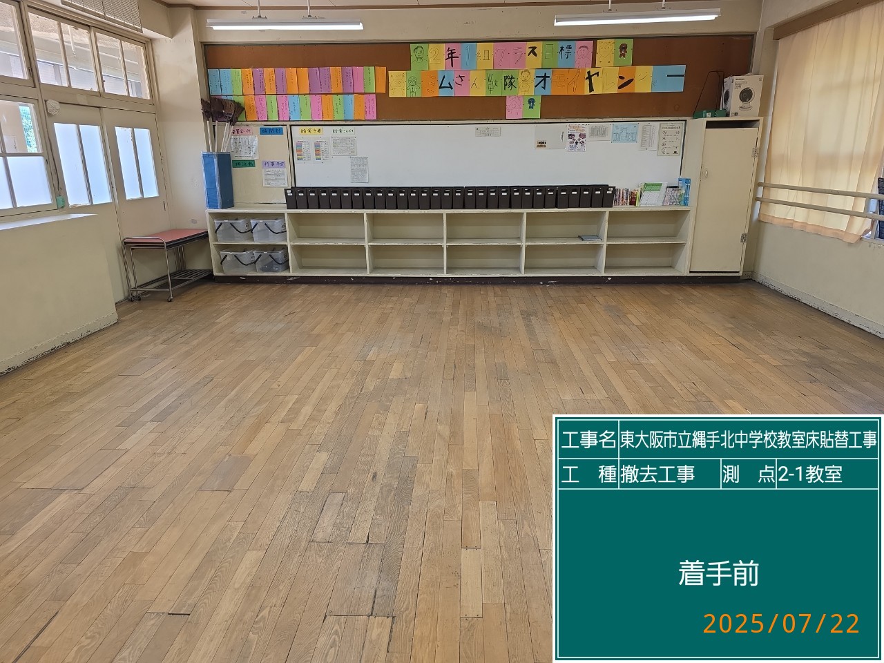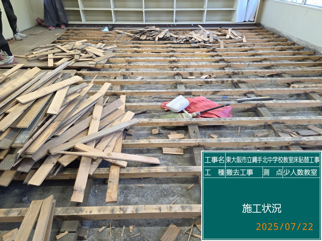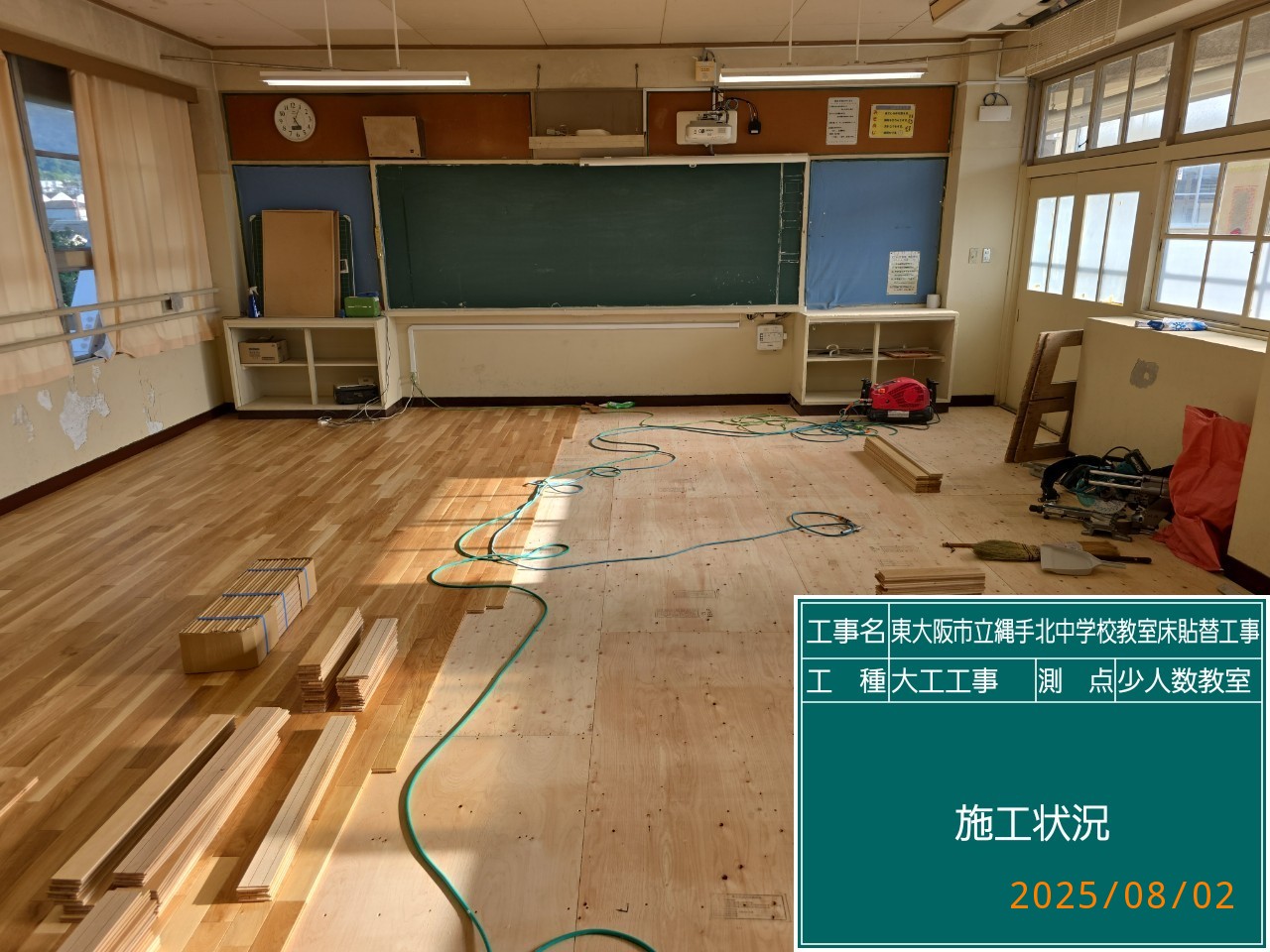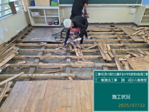 今回は、東大阪市立縄手北中学校で行っている、床の貼り替え工事についてご紹介します。
