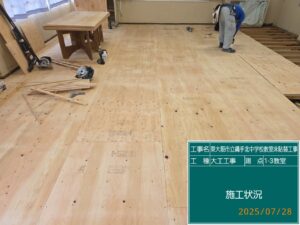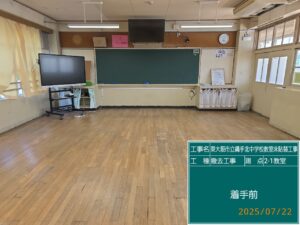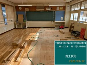 今回は5教室分の改修工事となるため、工事はまだ完成しておりませんが、学校が夏休みの間に完成させないといけません。