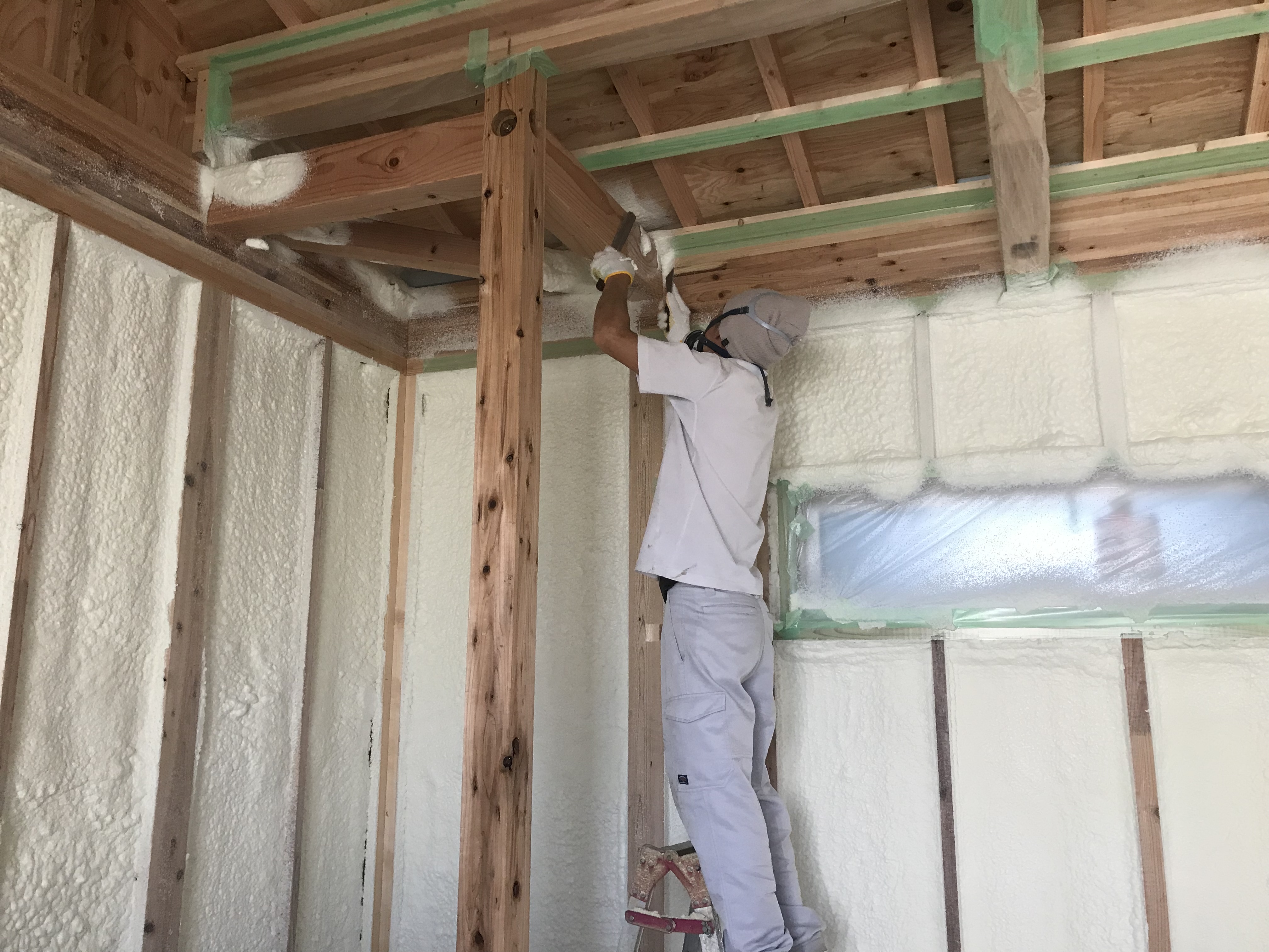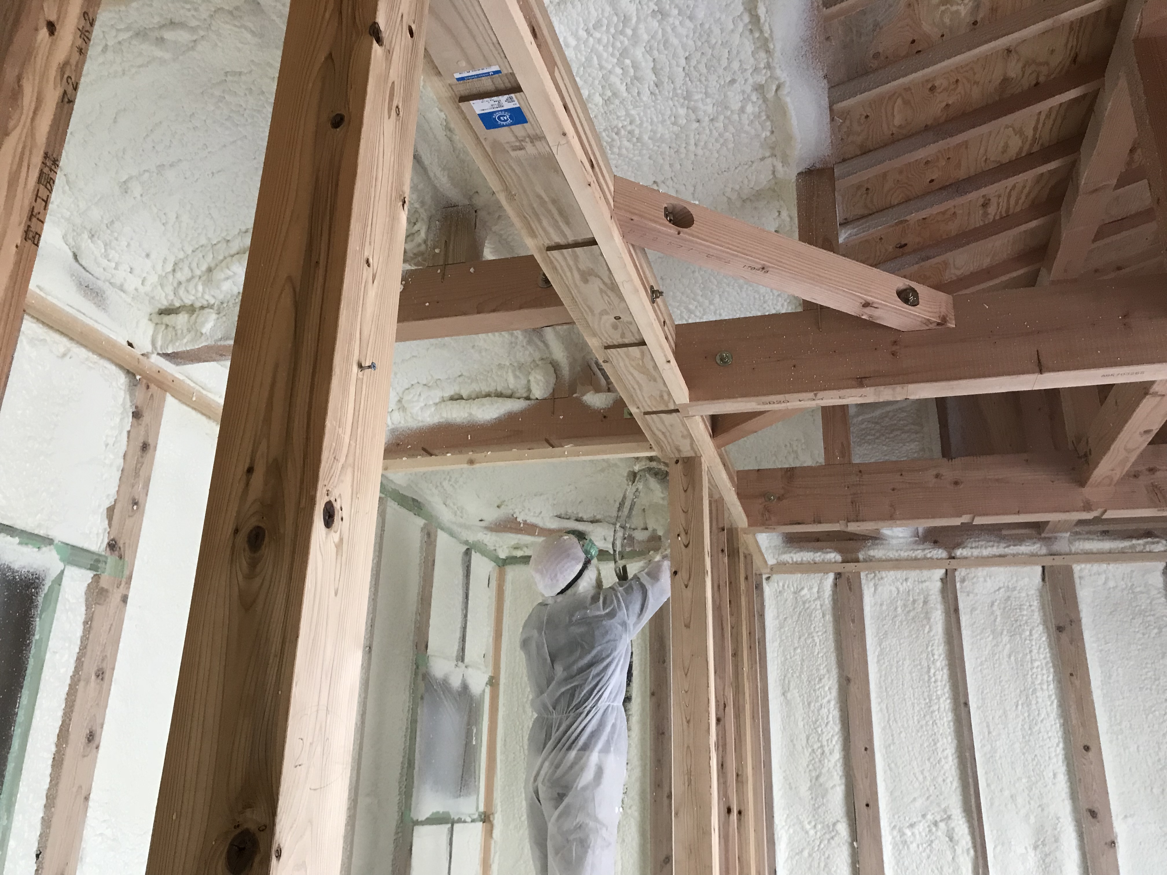 タイトルにある通り発泡ウレタン吹付断熱を先週の水曜日に行いました!