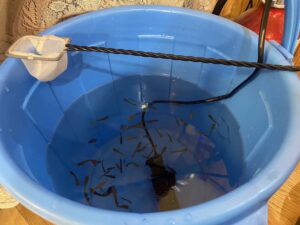まず魚たちを元の水槽からカルキ抜きした水に移し・・・
