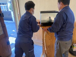新たなフィルターを設置した綺麗な水槽を玄関まで運び、