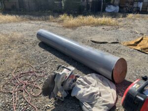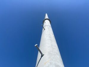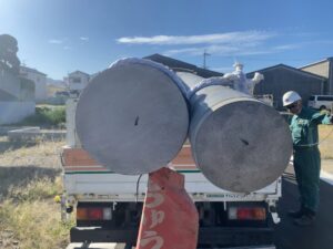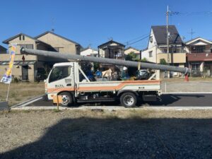 そして、いよいよ主役の電柱が到着しました!2本の電柱を繋いで1本の完成形になります!