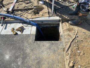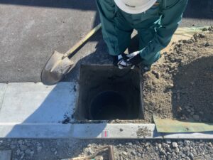 穴の中に作業員さんが潜り込んでどんどん深く掘り進んでいきます!3m程度まで掘ります!